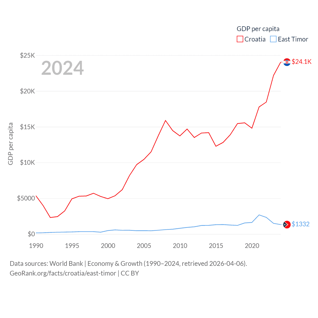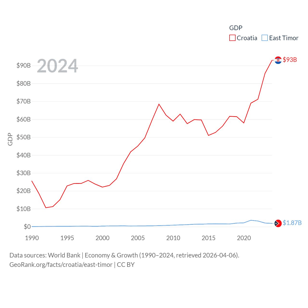 Data sources: World Bank | Economy & Growth (1990–2024, retrieved 2026-04-06).