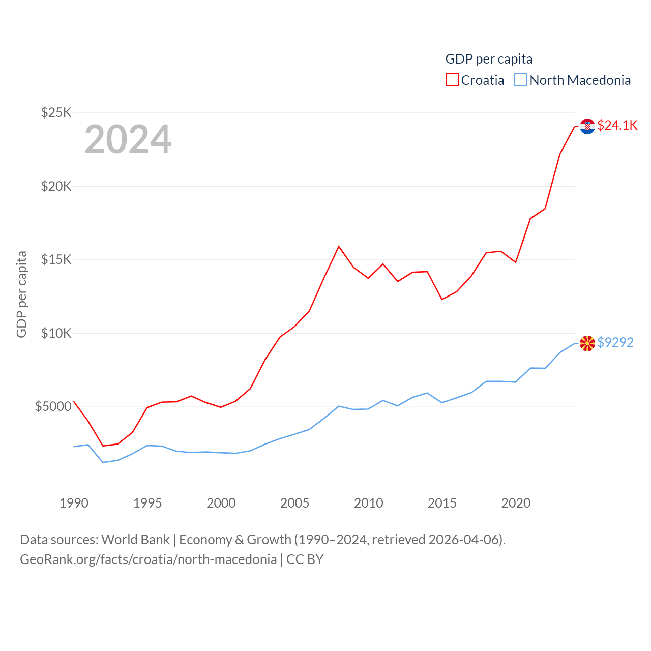 Data sources: World Bank | Economy & Growth (1990–2024, retrieved 2026-04-06).