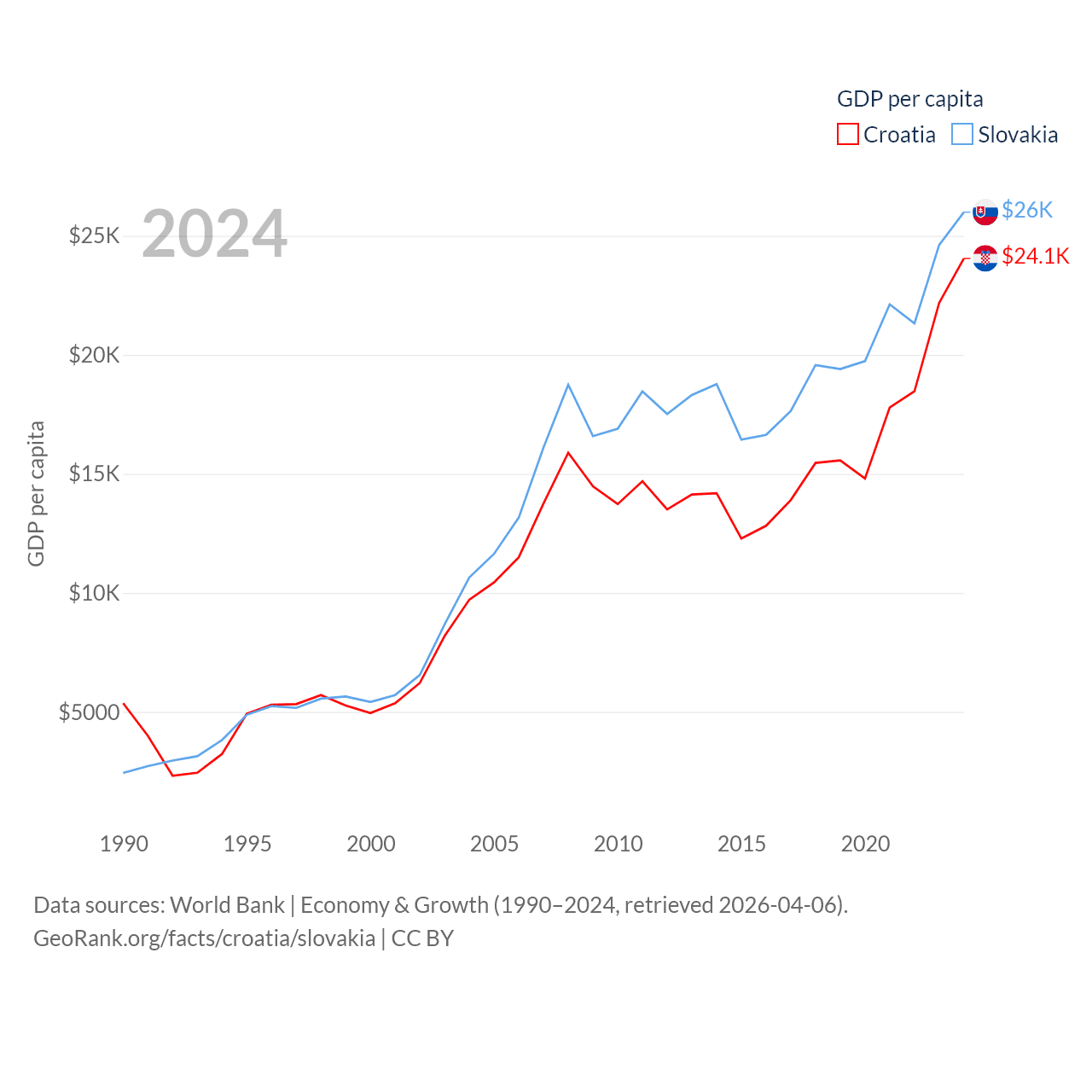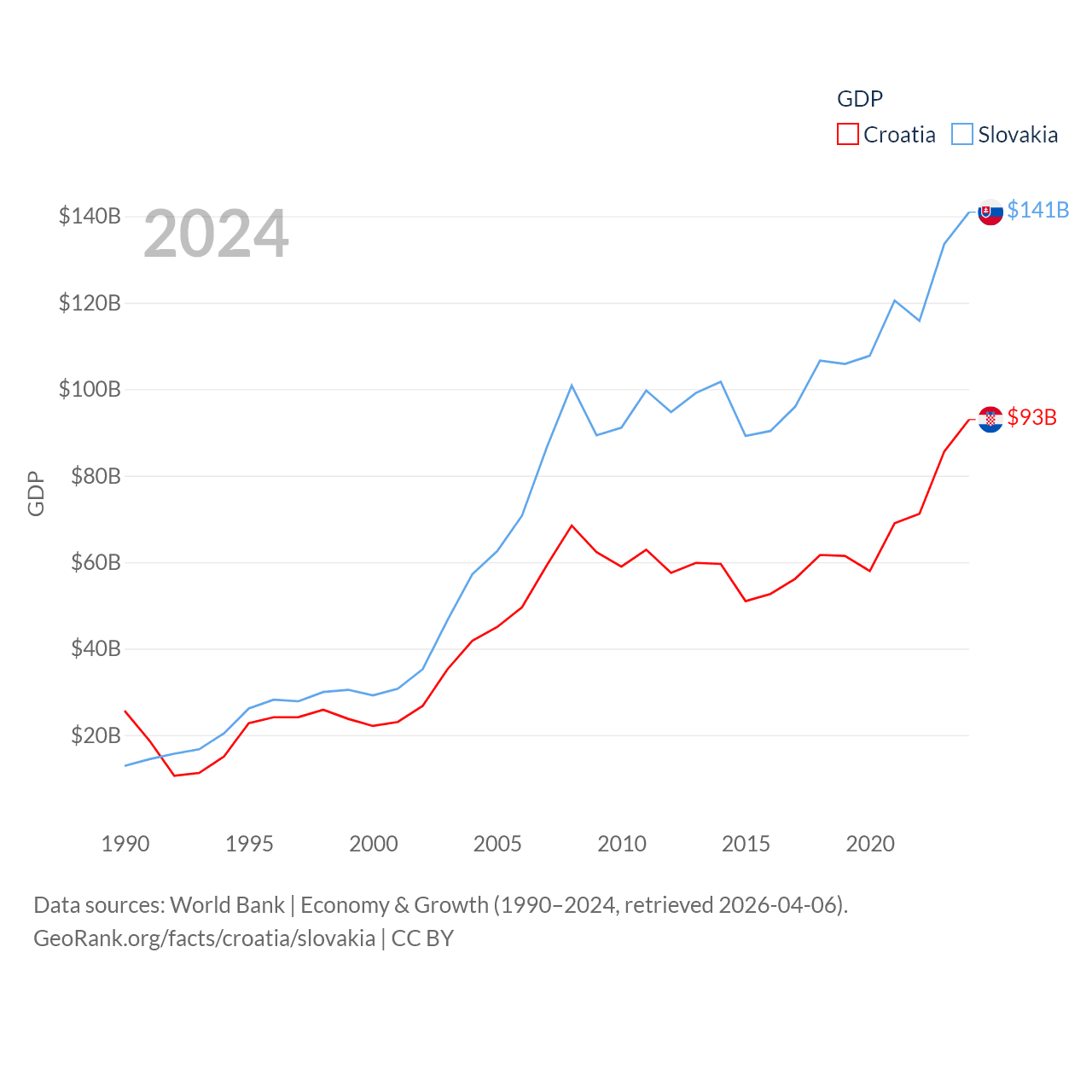 Data sources: World Bank | Economy & Growth (1990–2024, retrieved 2026-04-06).