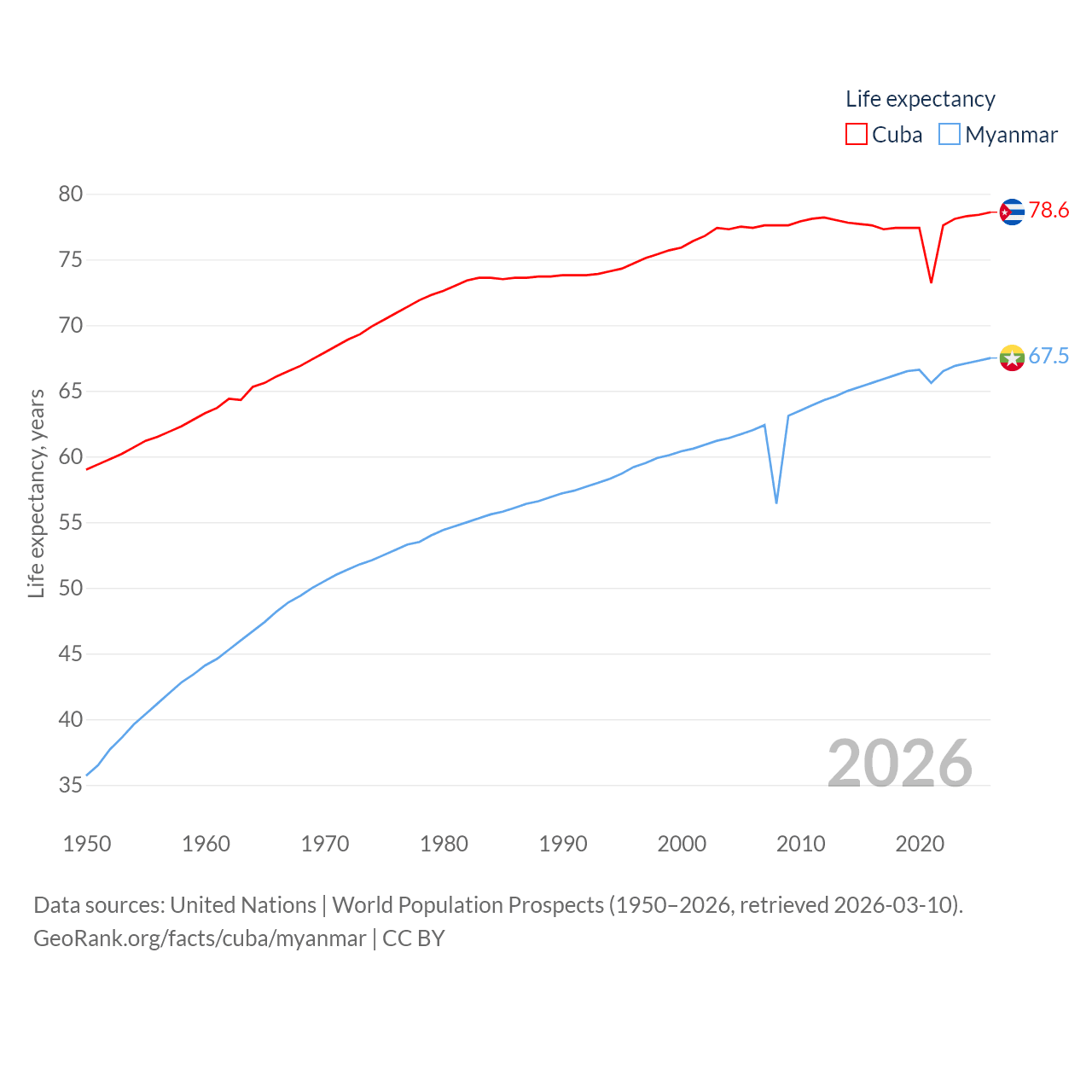 - United Nations | World Population Prospects (1950–2026, retrieved 2026-03-10)