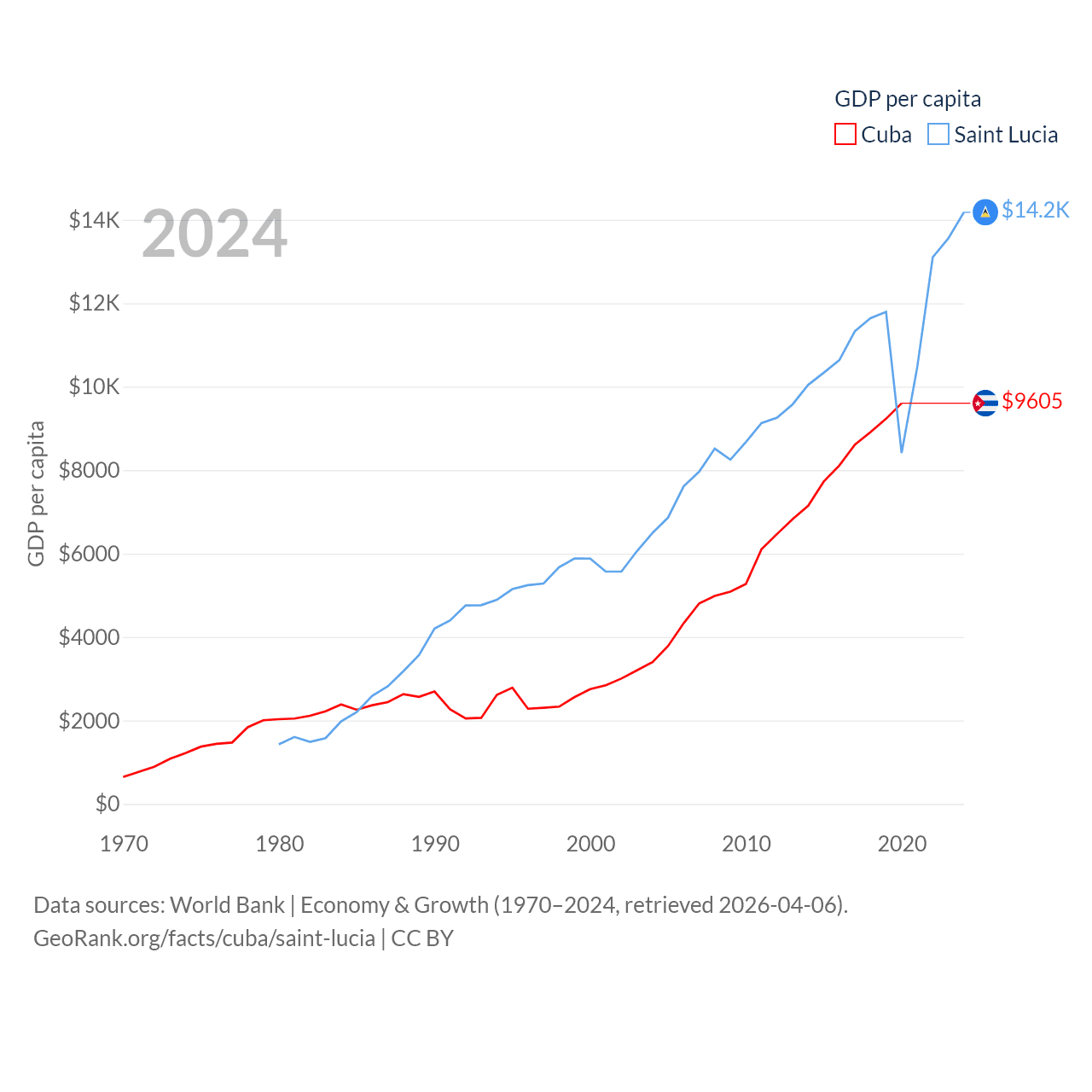 Cuba and Saint Lucia economies compared