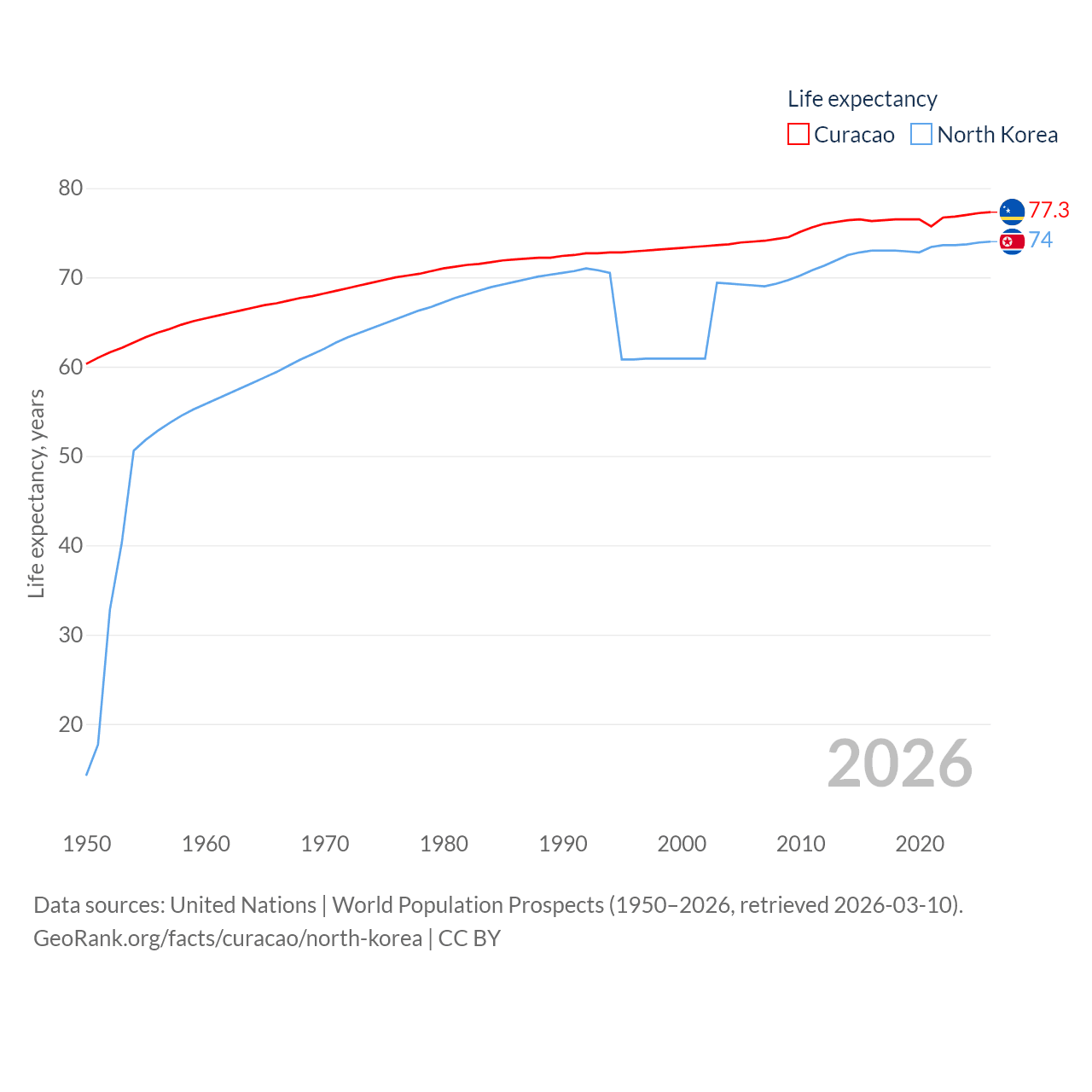 Curacao vs. North Korea life expectancy calculator