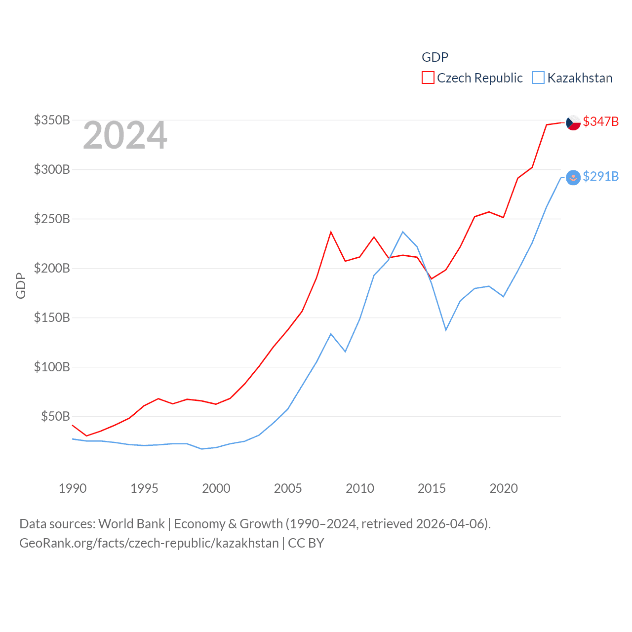 Data sources: World Bank | Economy & Growth (1990–2024, retrieved 2026-04-06).
