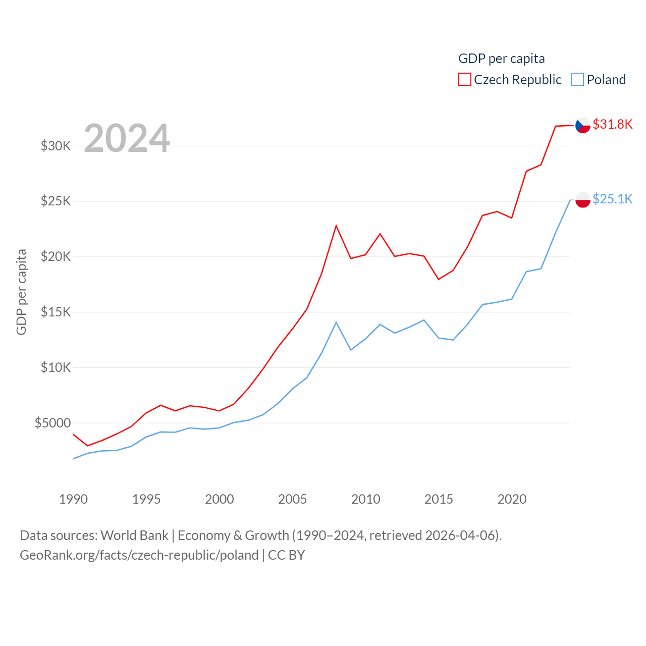 Data sources: World Bank | Economy & Growth (1990–2024, retrieved 2026-04-06).