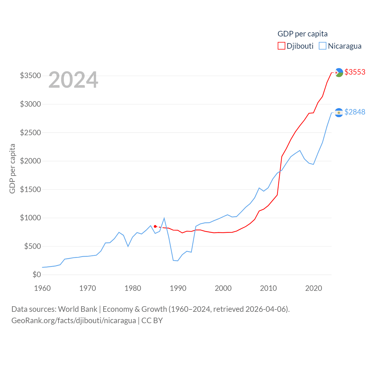 Djibouti and Nicaragua economies compared