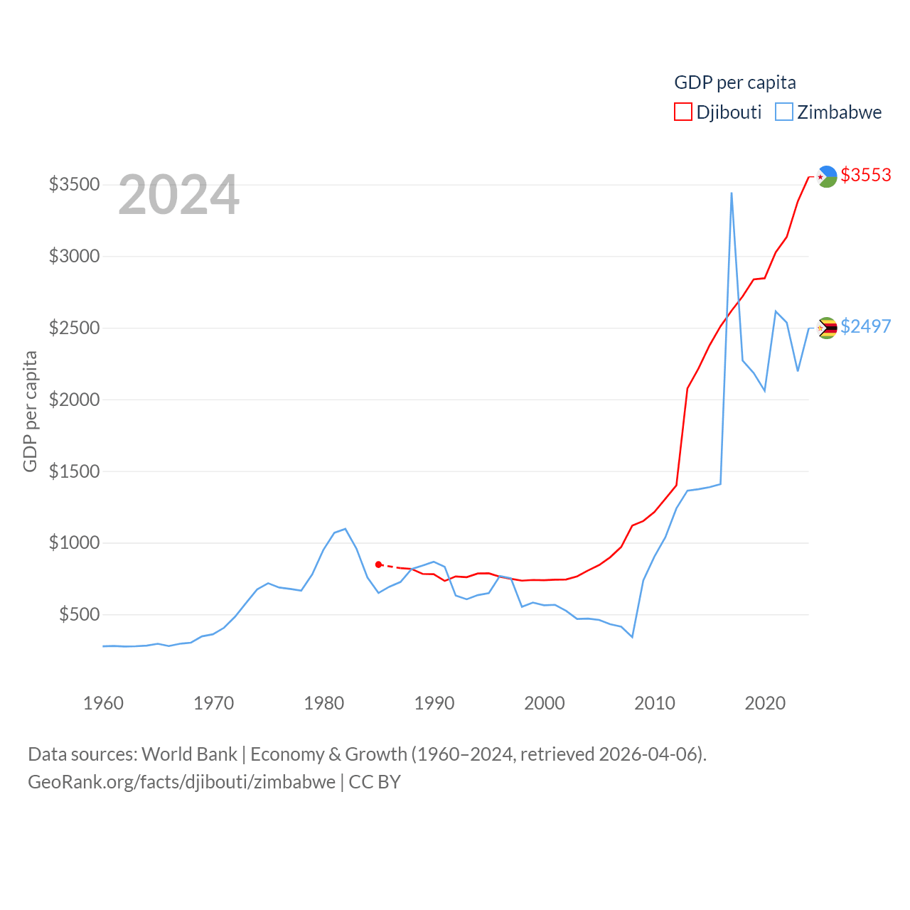 Djibouti and Zimbabwe economies compared