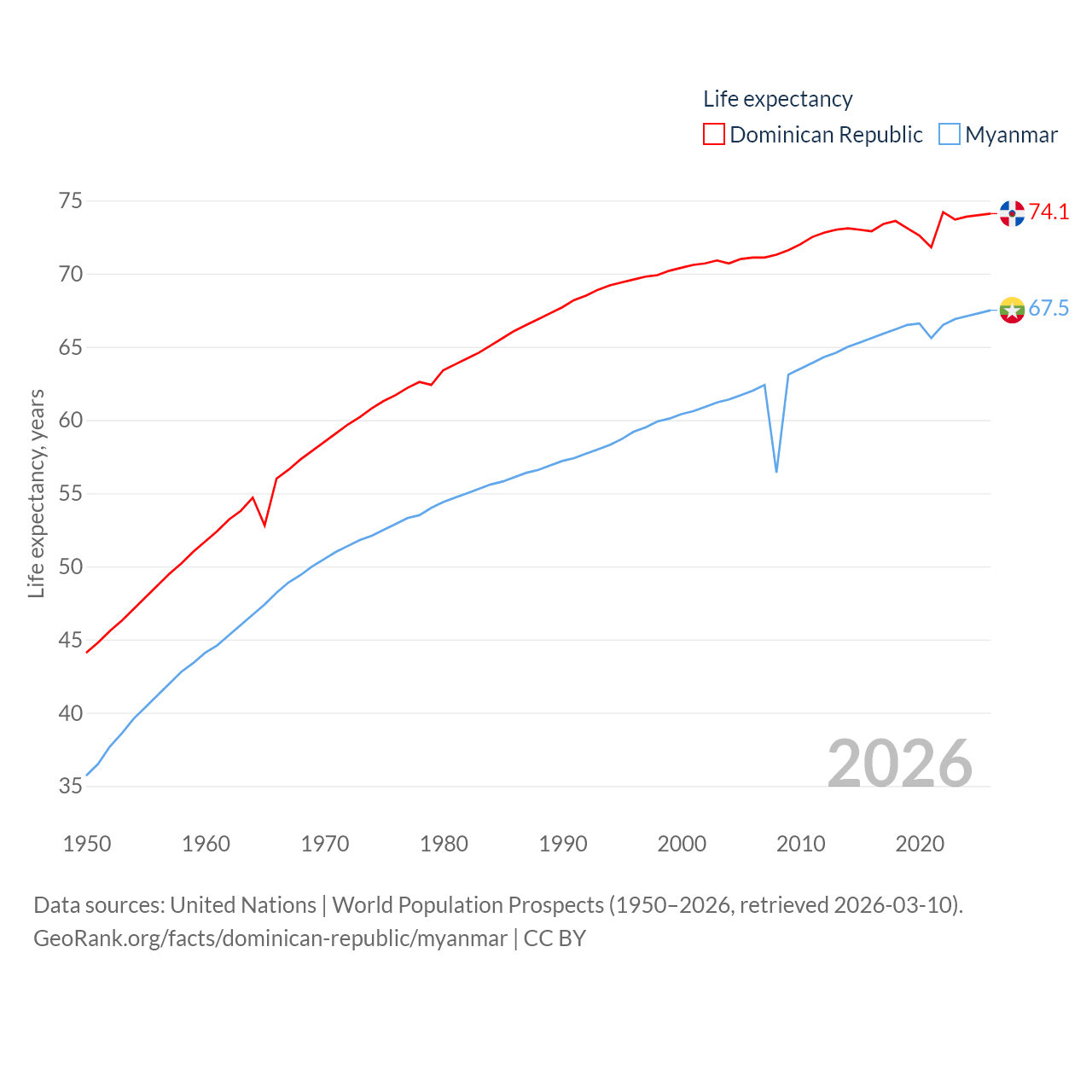 - United Nations | World Population Prospects (1950–2026, retrieved 2026-03-10)