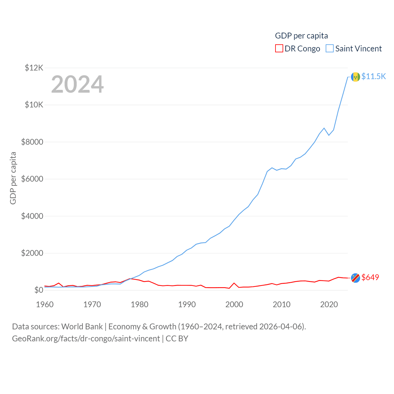 DR Congo and Saint Vincent economies compared