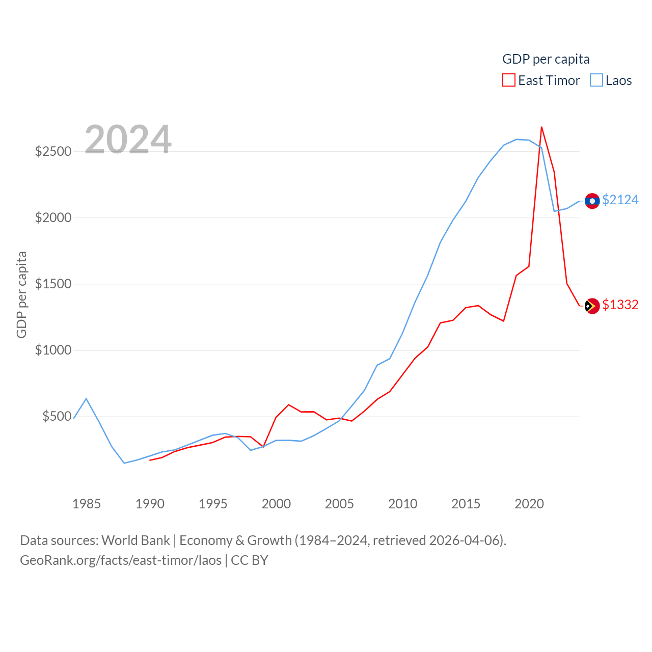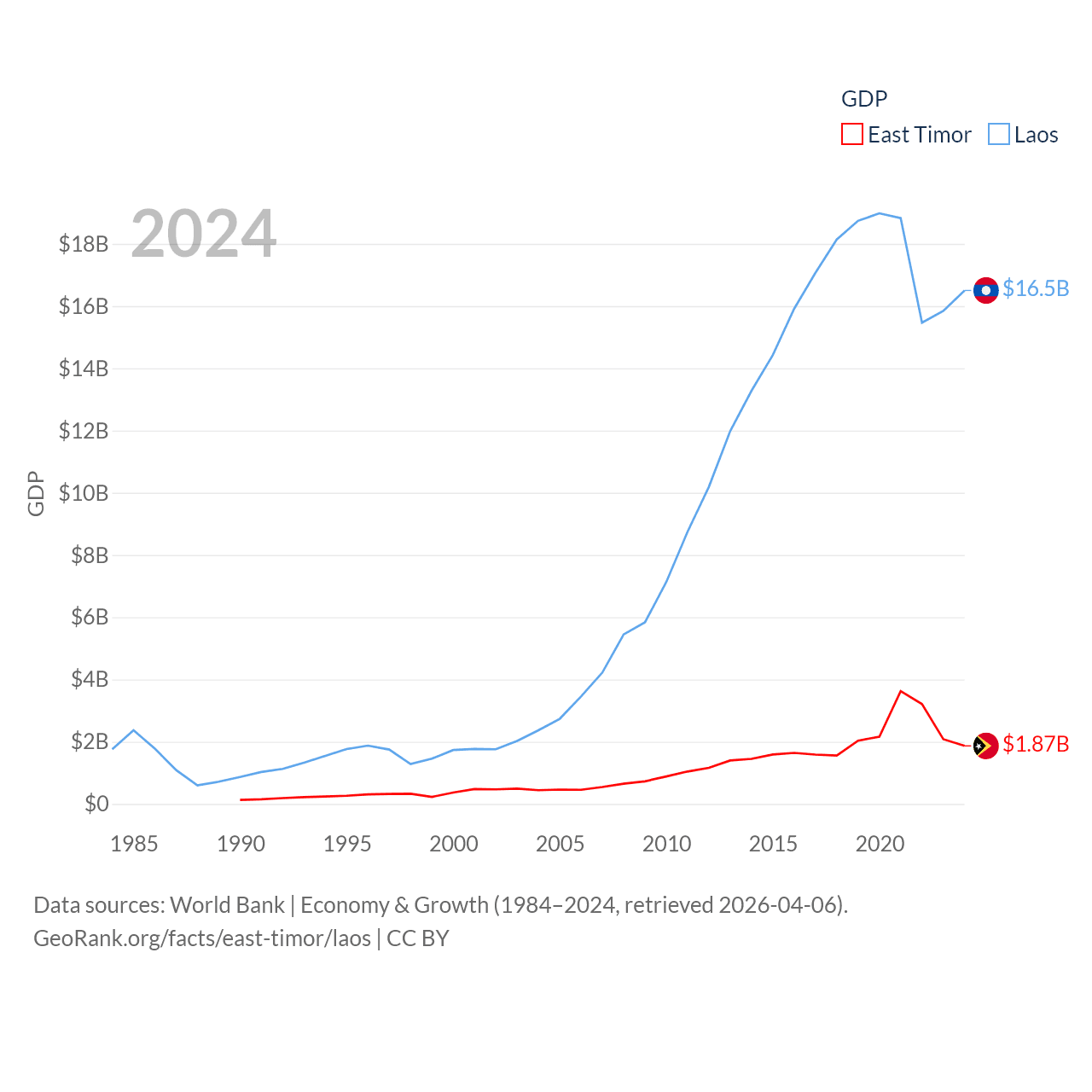 Data sources: World Bank | Economy & Growth (1984–2024, retrieved 2026-04-06).