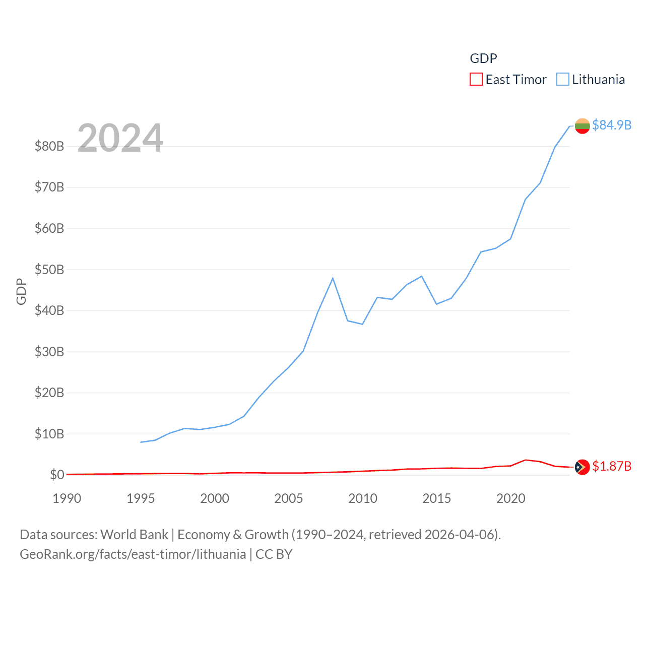 Data sources: World Bank | Economy & Growth (1990–2024, retrieved 2026-04-06).