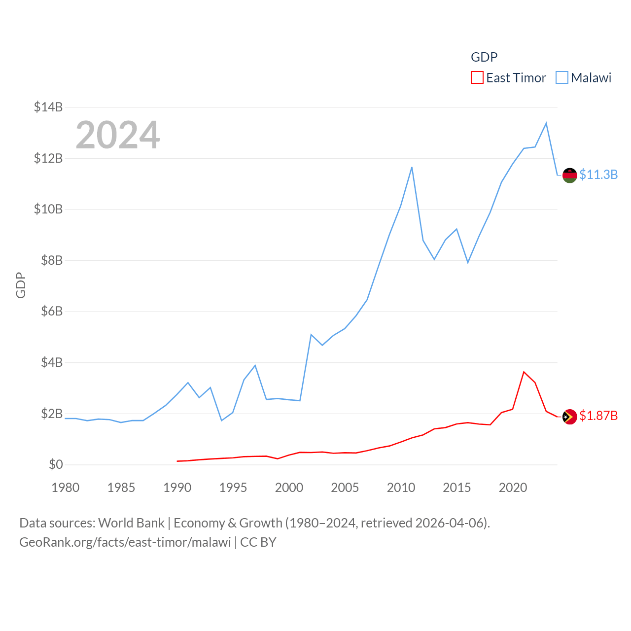 Data sources: World Bank | Economy & Growth (1980–2024, retrieved 2026-04-06).