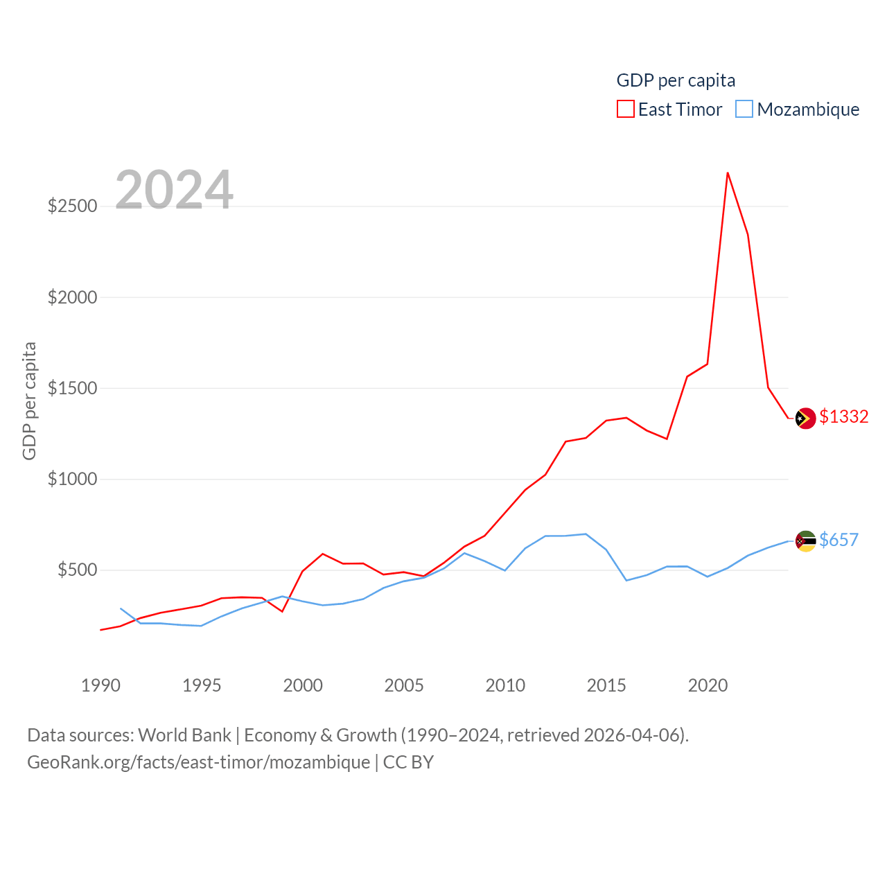 Data sources: World Bank | Economy & Growth (1990–2024, retrieved 2026-04-06).