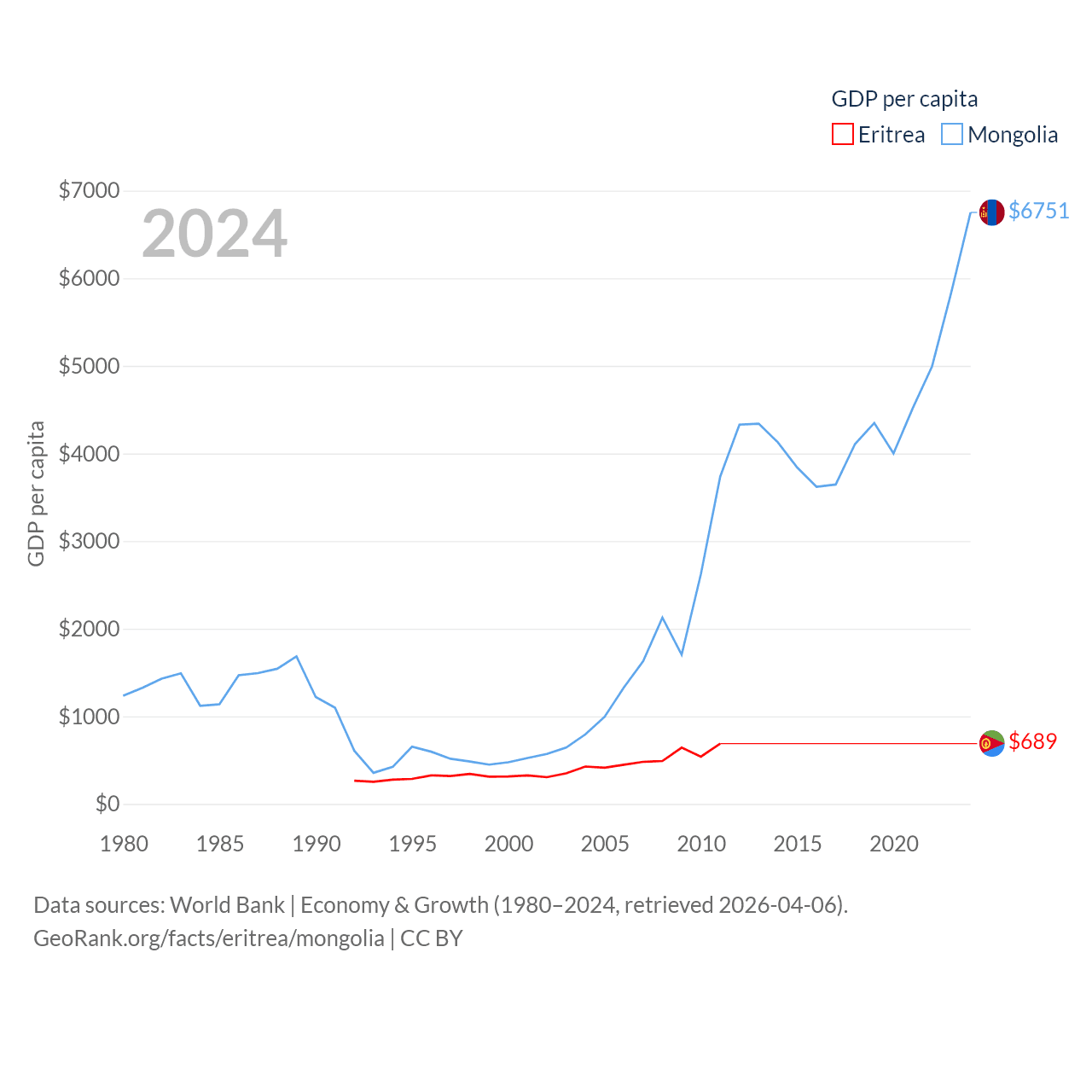 Data sources: World Bank | Economy & Growth (1980–2024, retrieved 2026-04-06).
