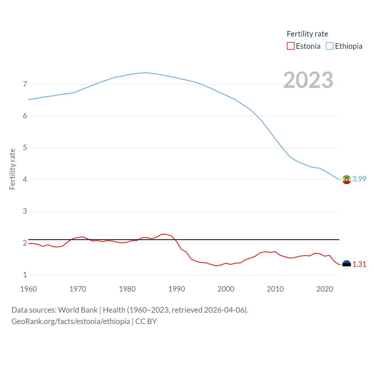 - World Bank | Health (1960–2025, retrieved 2026-04-06)