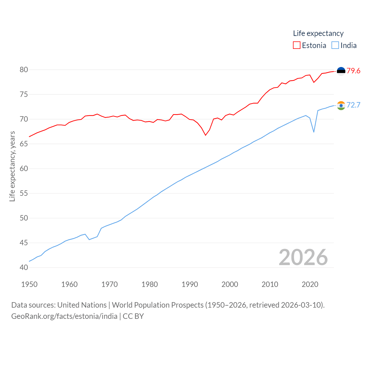 - United Nations | World Population Prospects (1950–2026, retrieved 2026-03-10)