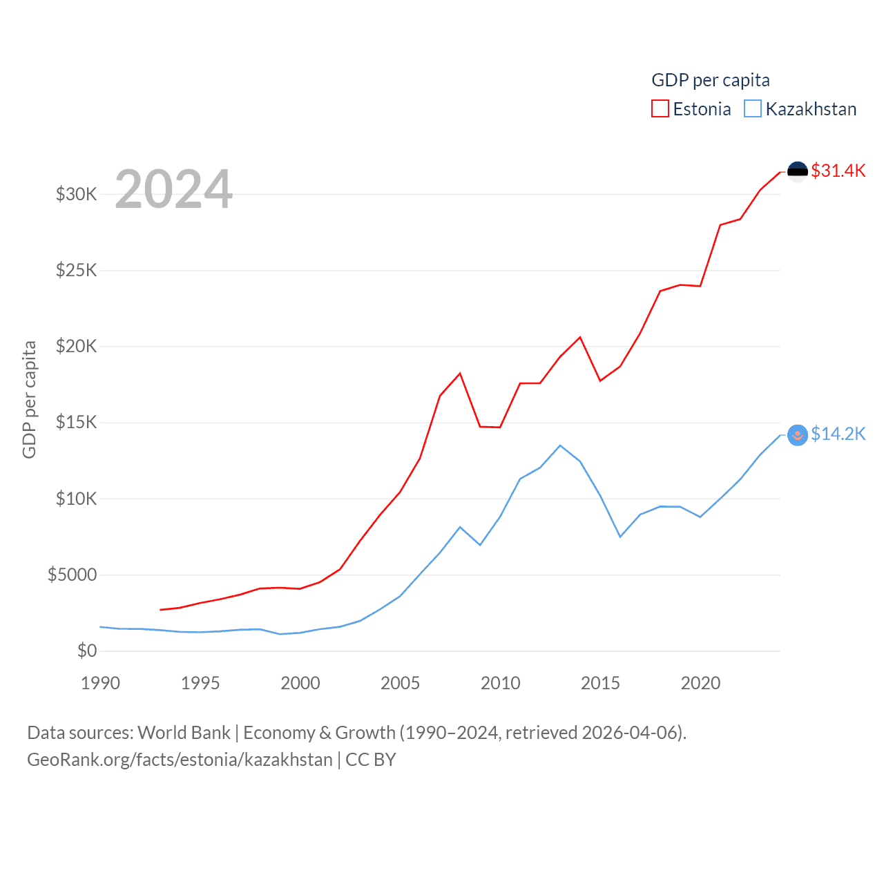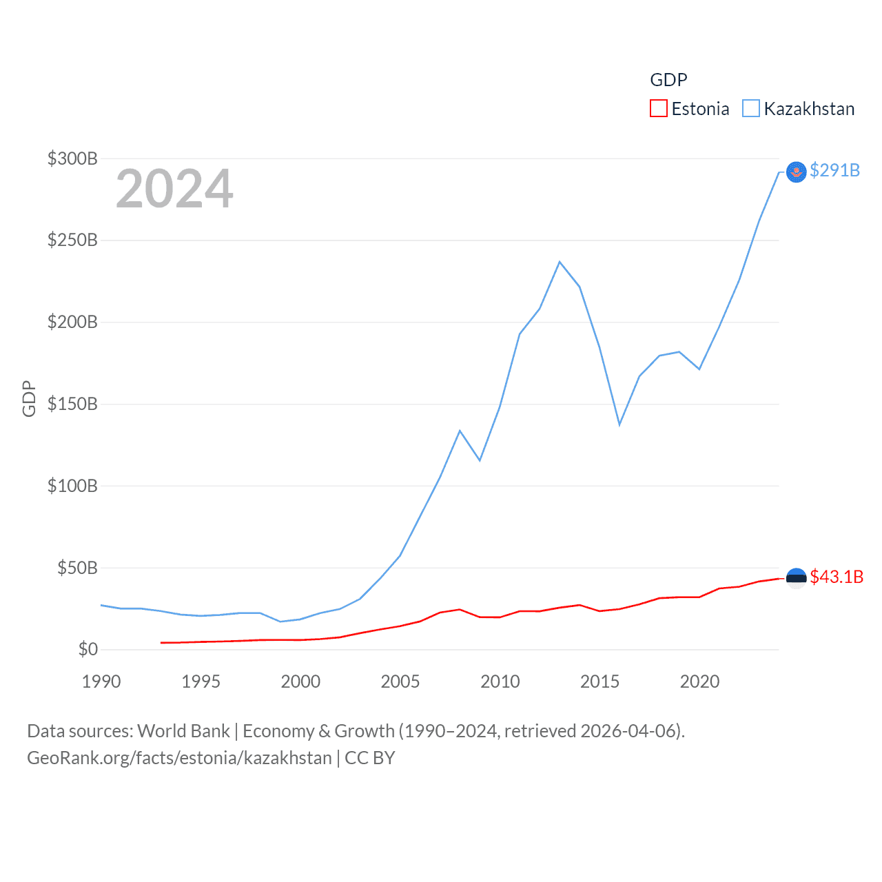 Data sources: World Bank | Economy & Growth (1990–2024, retrieved 2026-04-06).