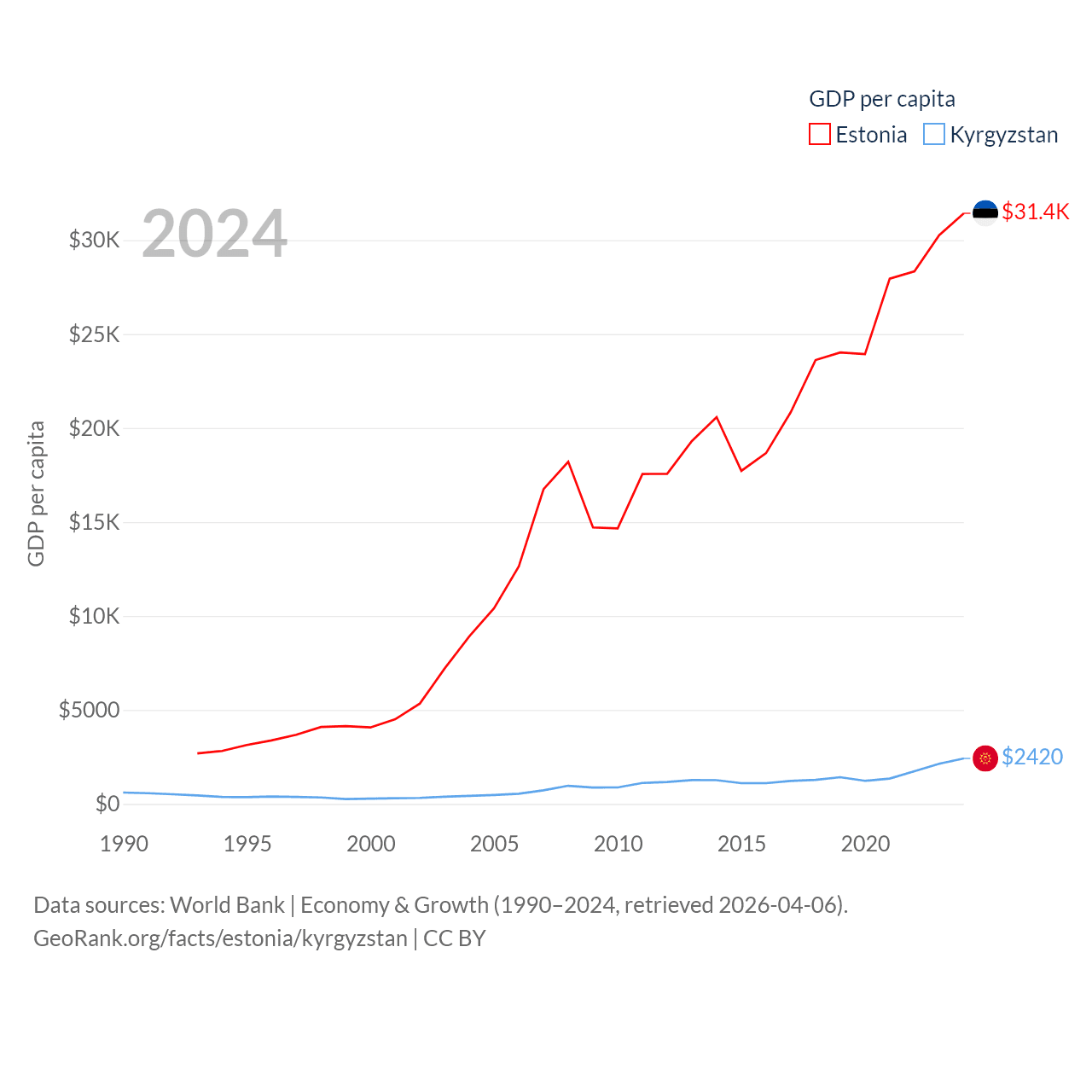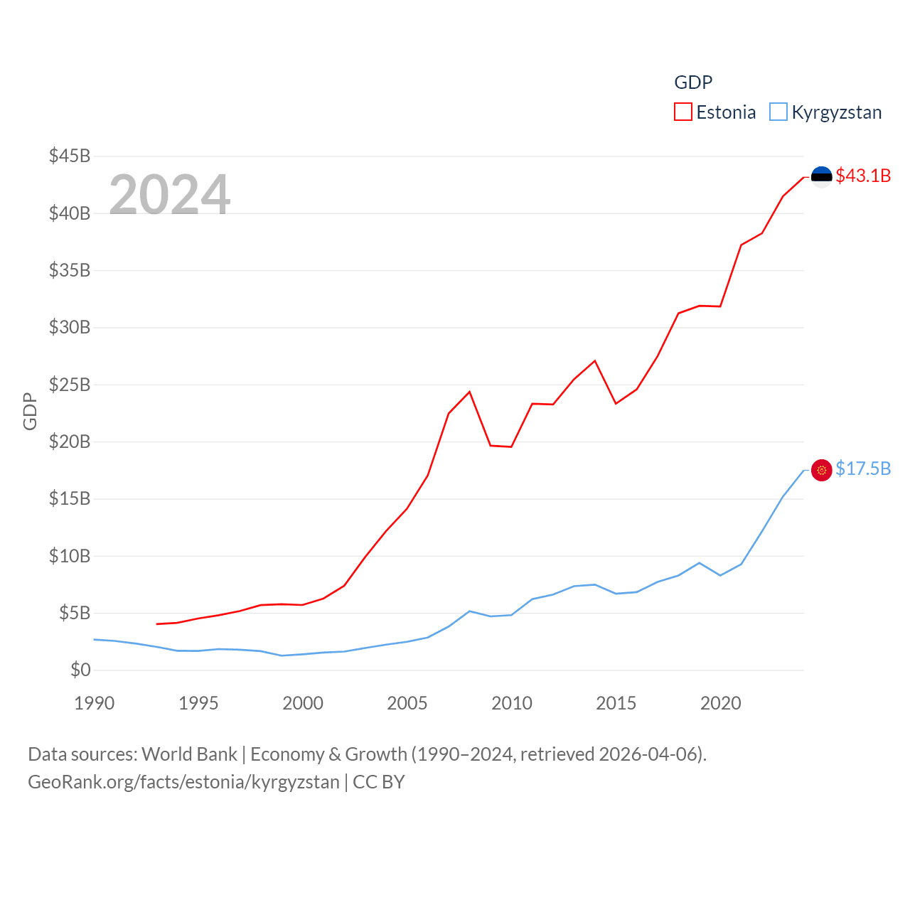 Data sources: World Bank | Economy & Growth (1990–2024, retrieved 2026-04-06).