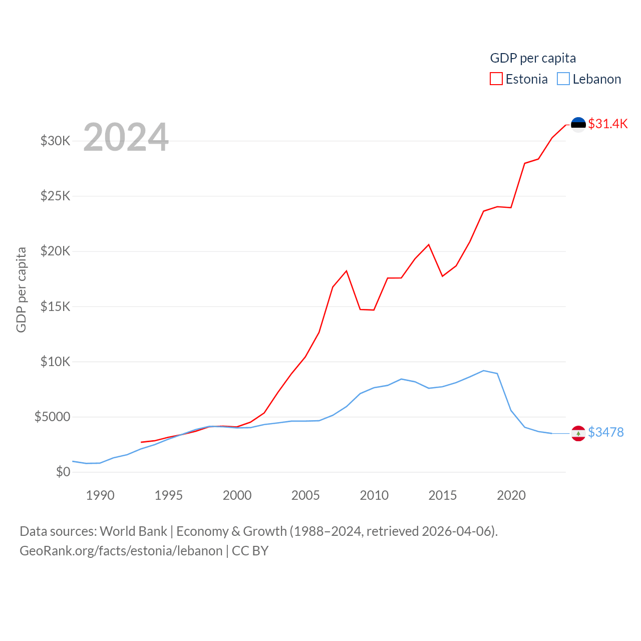 Data sources: World Bank | Economy & Growth (1988–2024, retrieved 2026-04-06).