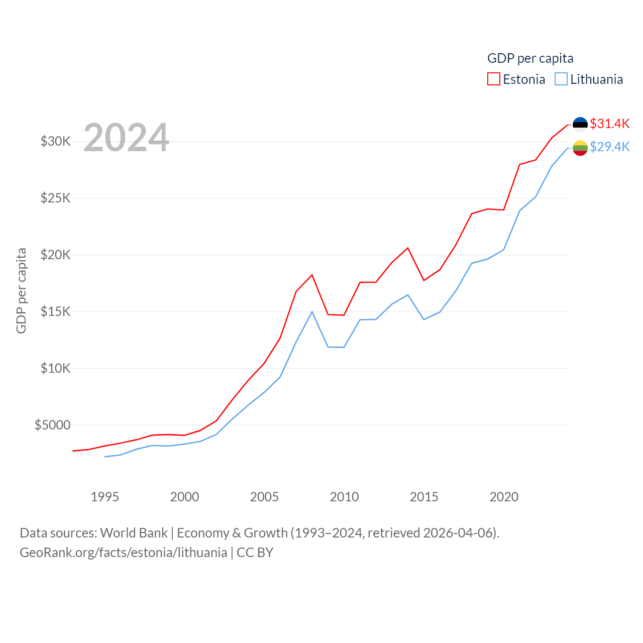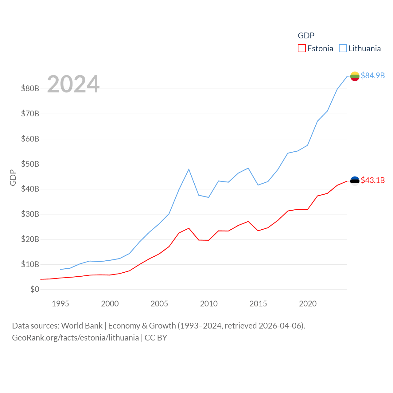 Data sources: World Bank | Economy & Growth (1993–2024, retrieved 2026-04-06).
