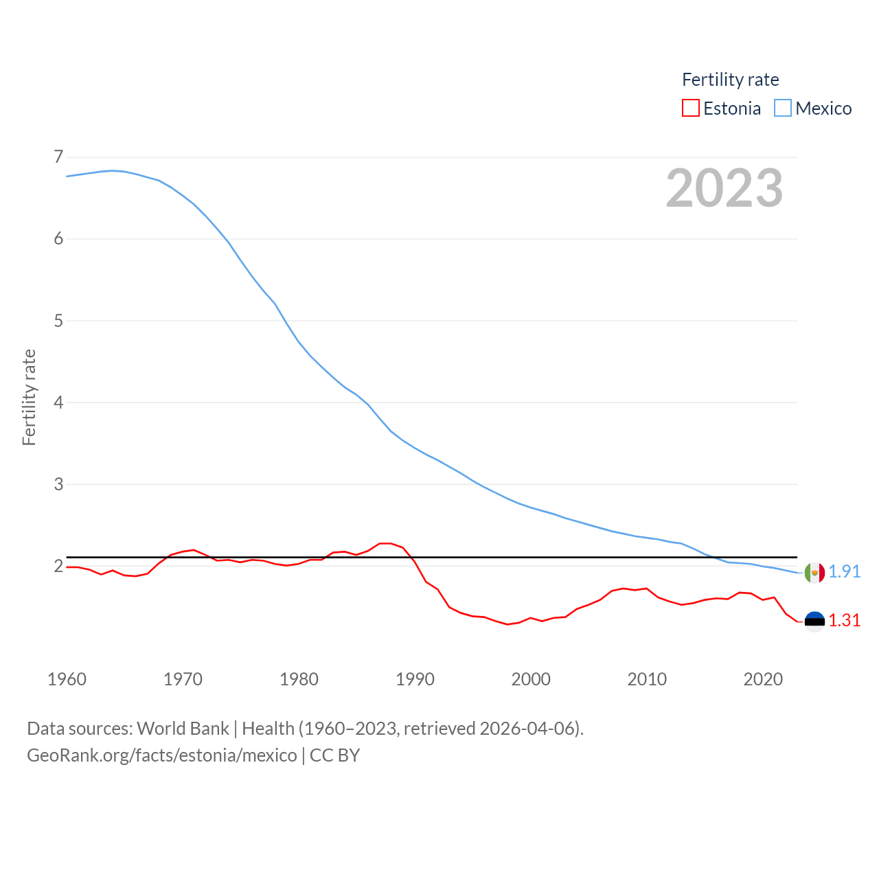 - World Bank | Health (1960–2025, retrieved 2026-04-06)