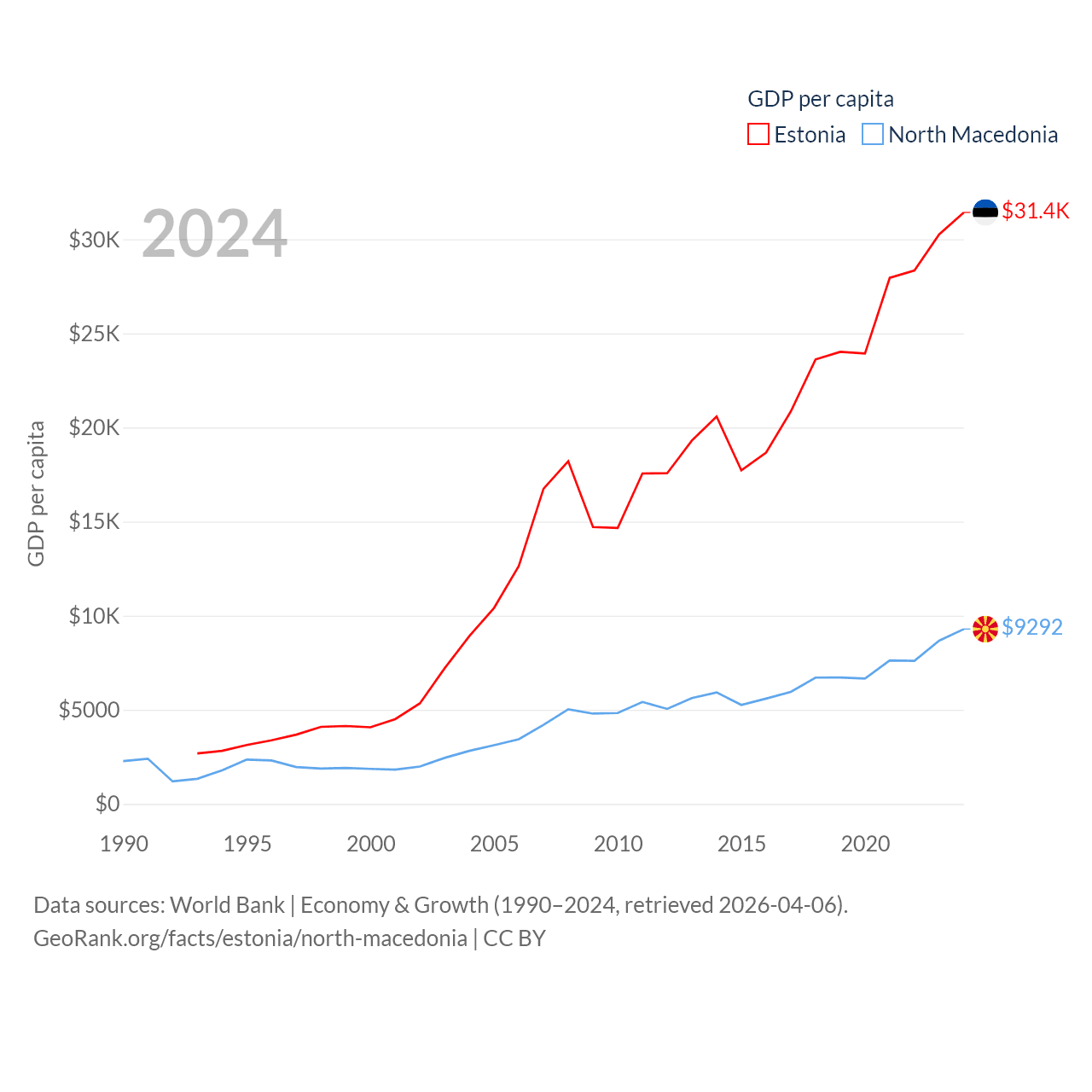 Data sources: World Bank | Economy & Growth (1990–2024, retrieved 2026-04-06).