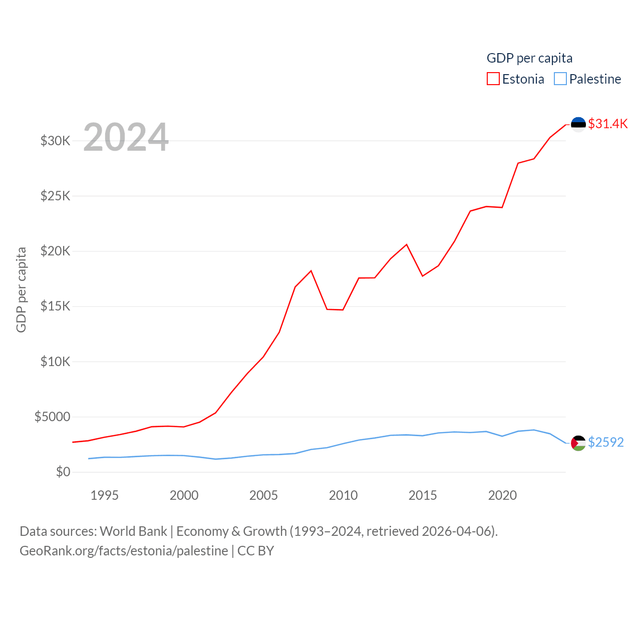 Data sources: World Bank | Economy & Growth (1993–2024, retrieved 2026-04-06).