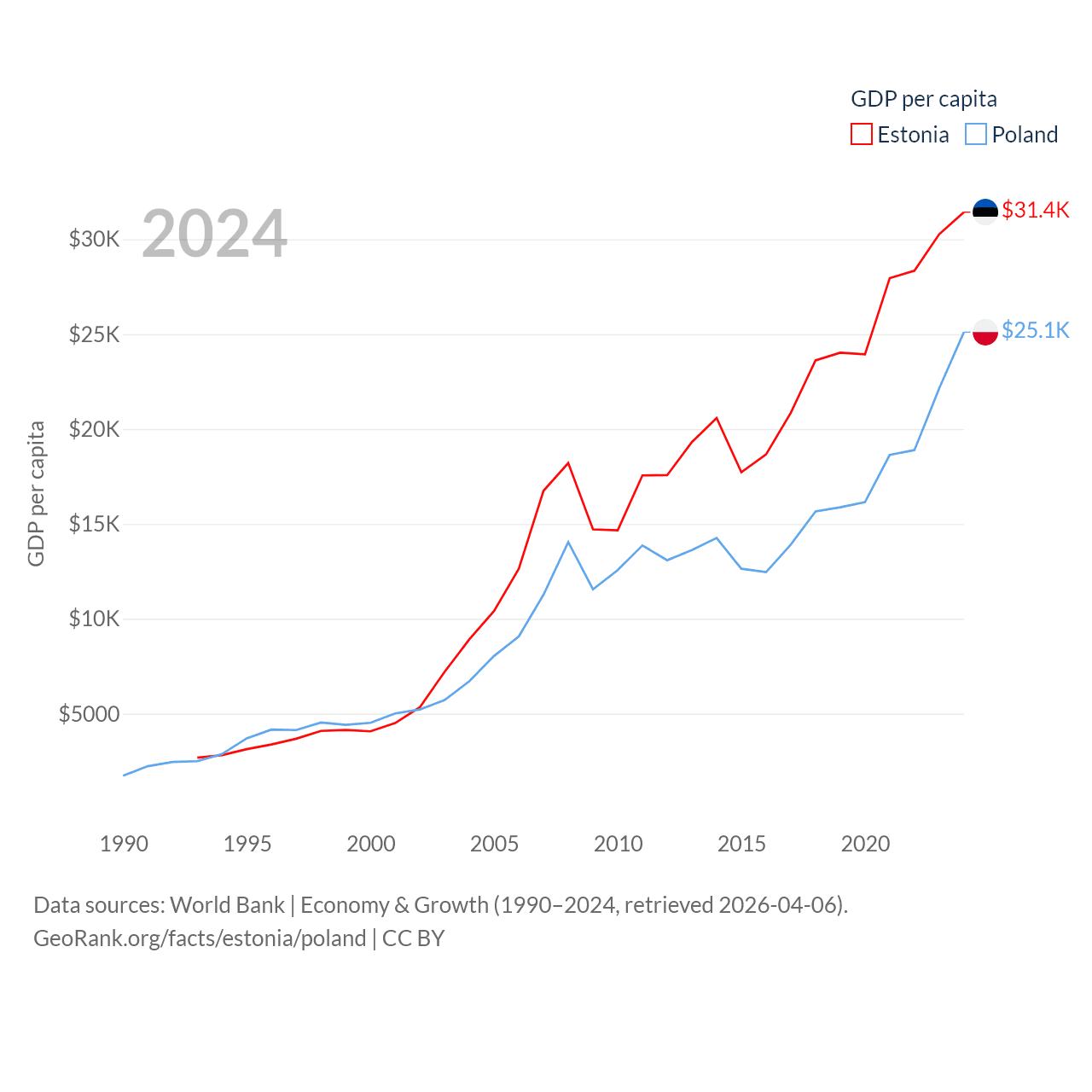 Data sources: World Bank | Economy & Growth (1990–2024, retrieved 2026-04-06).