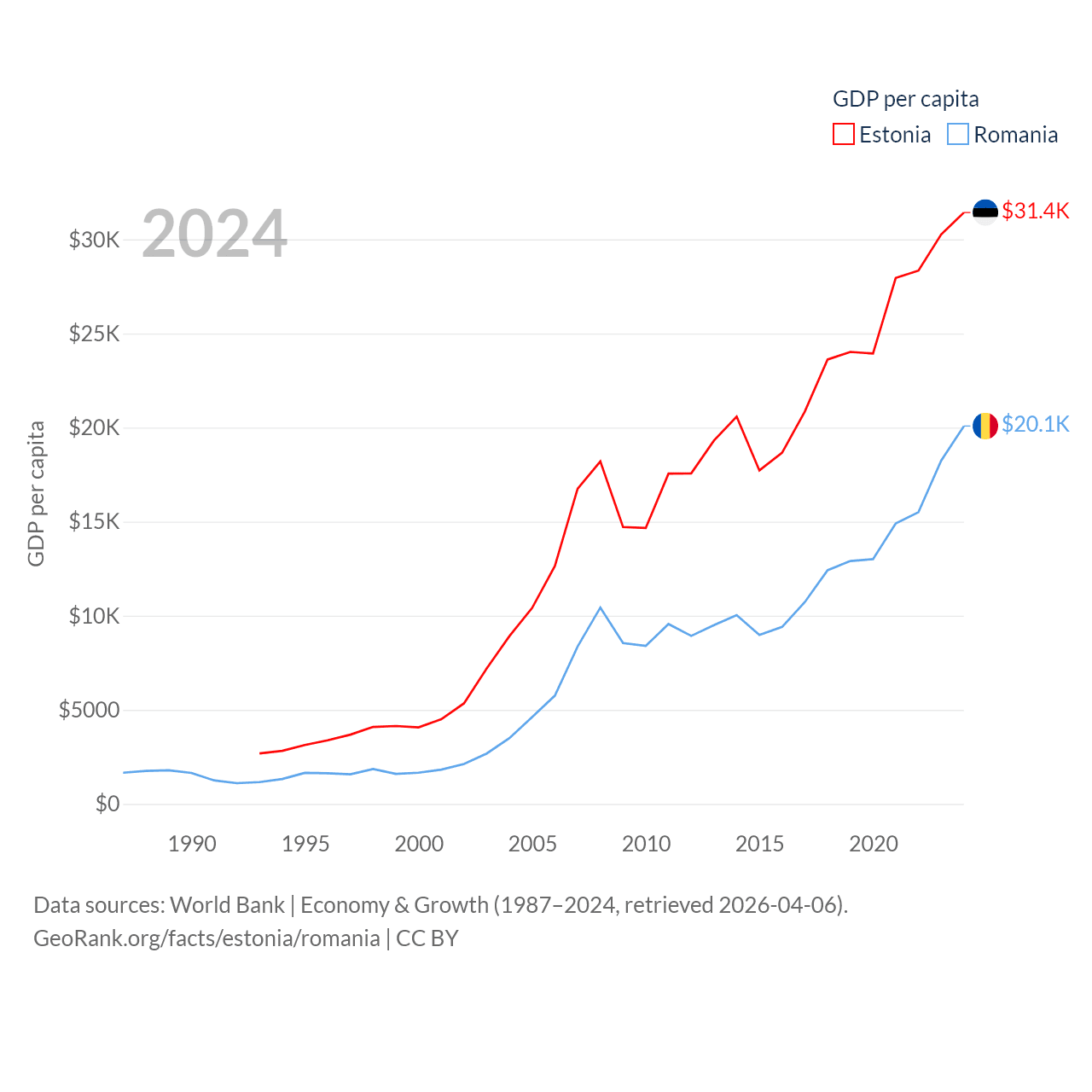 Data sources: World Bank | Economy & Growth (1987–2024, retrieved 2026-04-06).