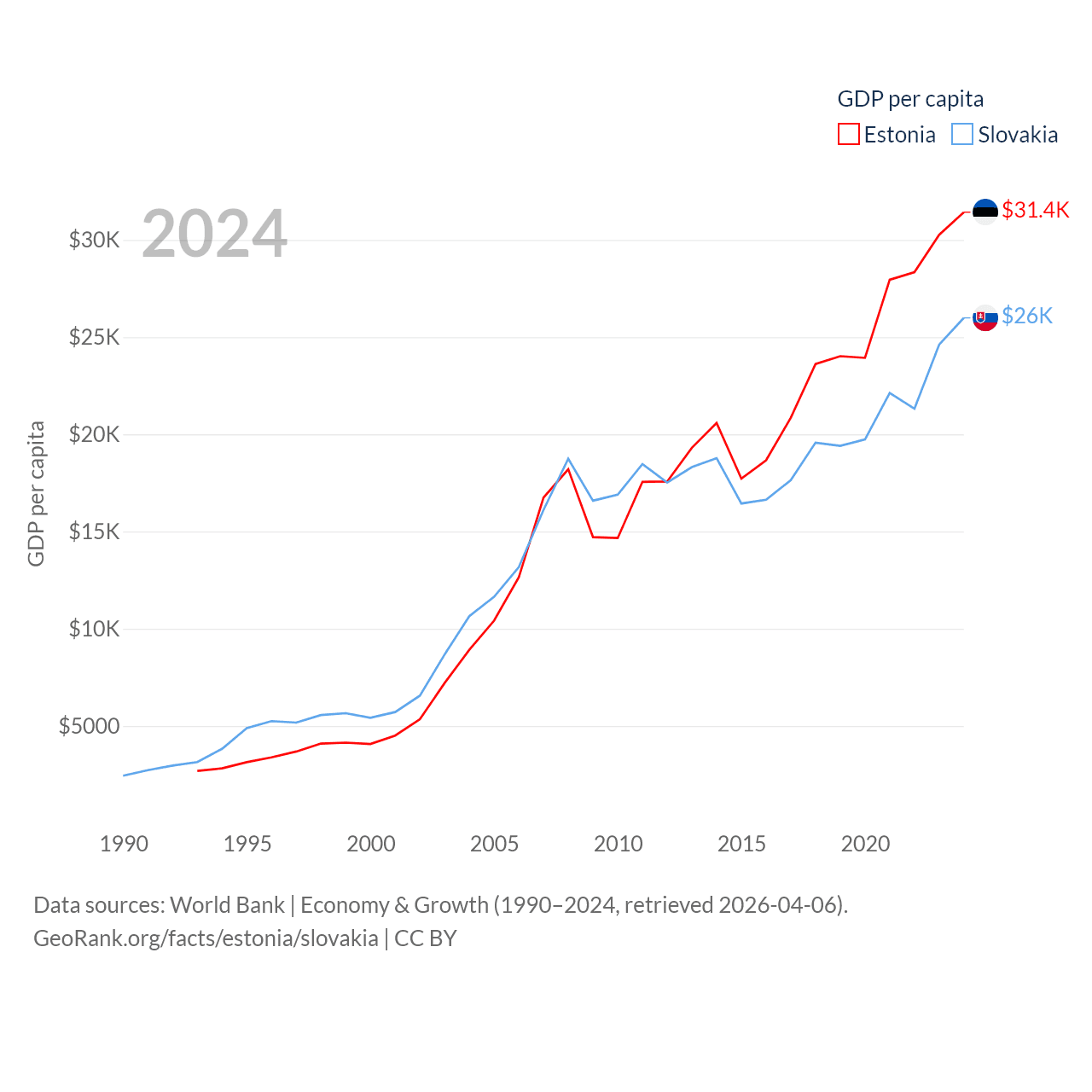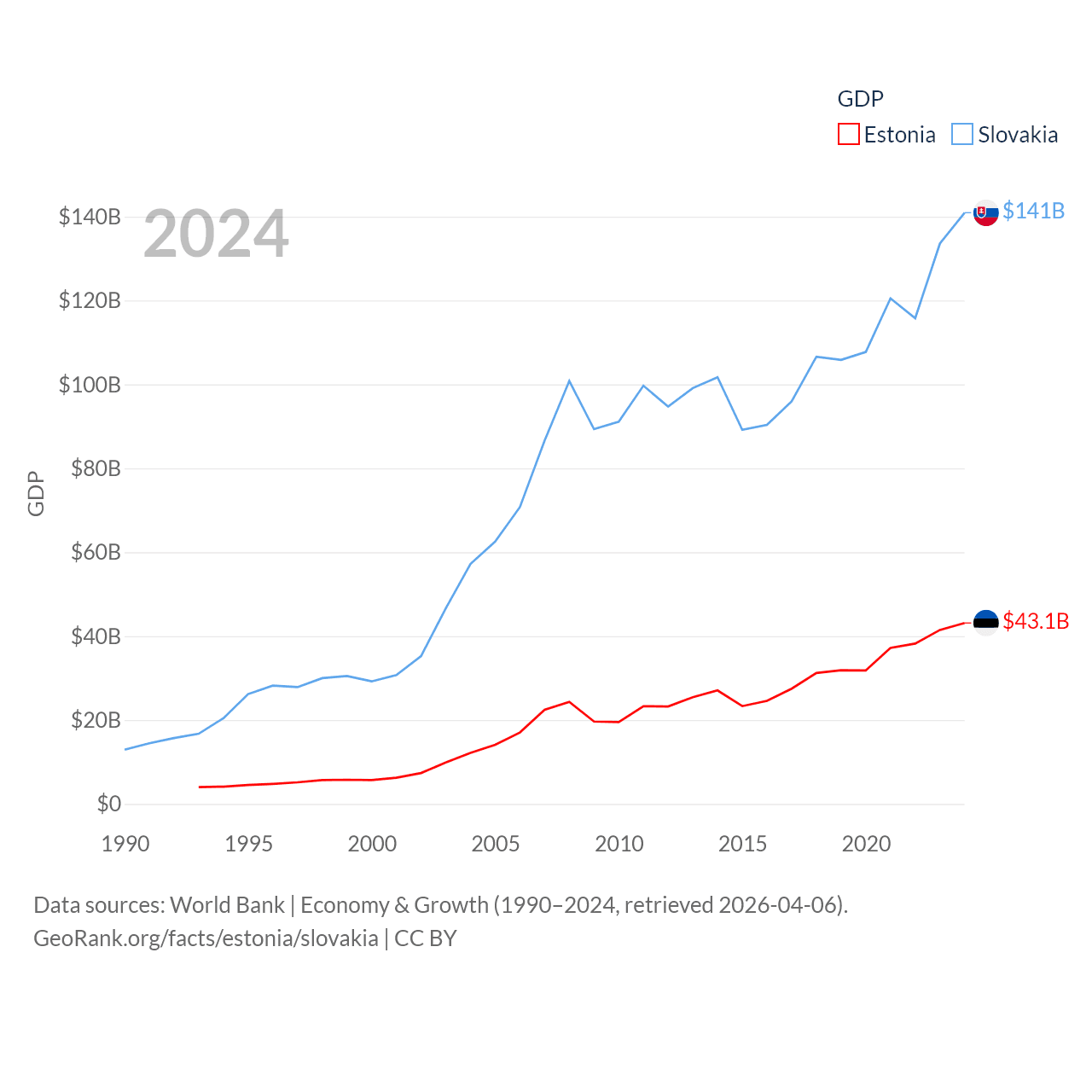 Data sources: World Bank | Economy & Growth (1990–2024, retrieved 2026-04-06).