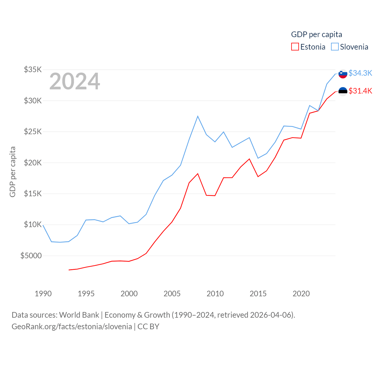 Data sources: World Bank | Economy & Growth (1990–2024, retrieved 2026-04-06).