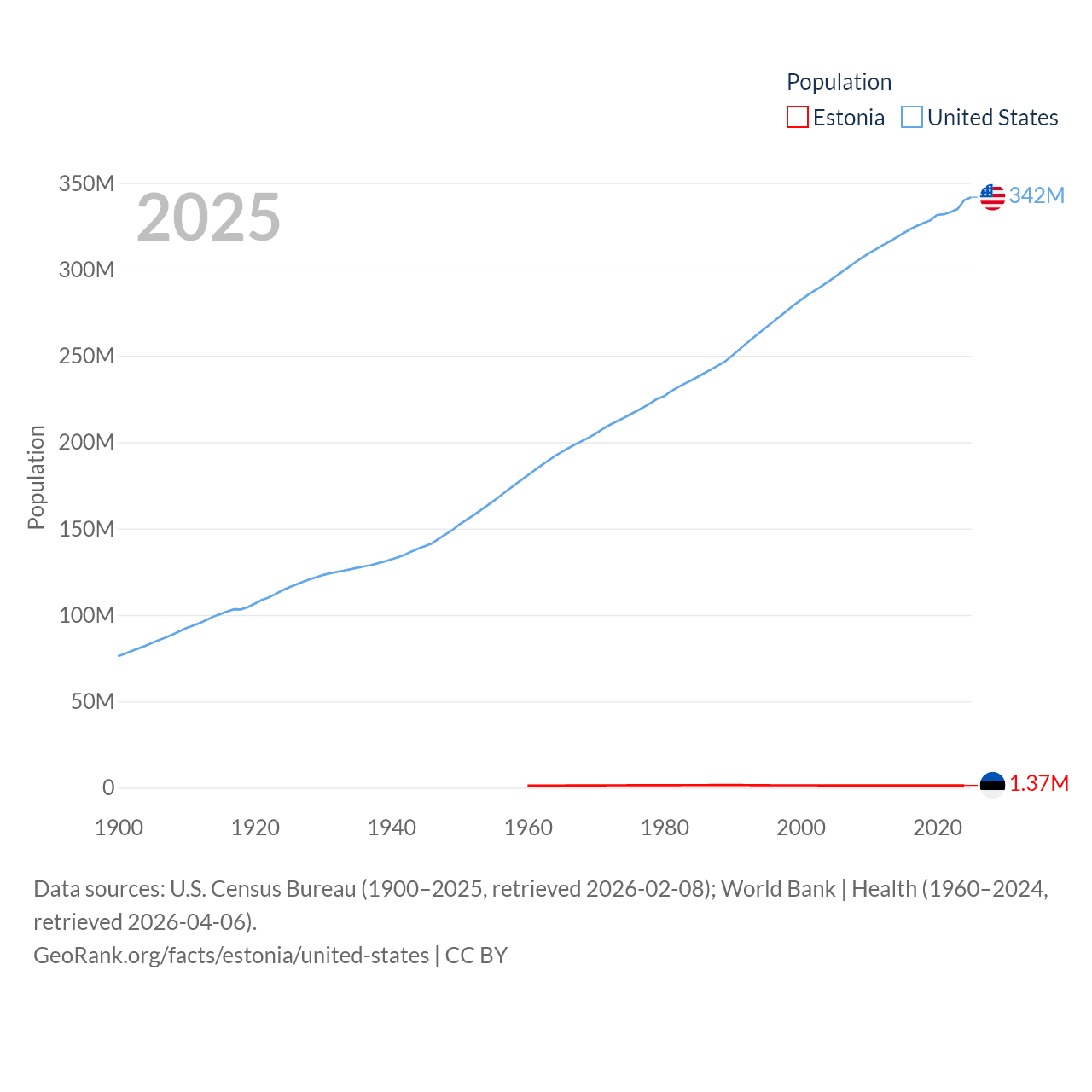 - U.S. Census Bureau (1900–2025, retrieved 2026-02-08)