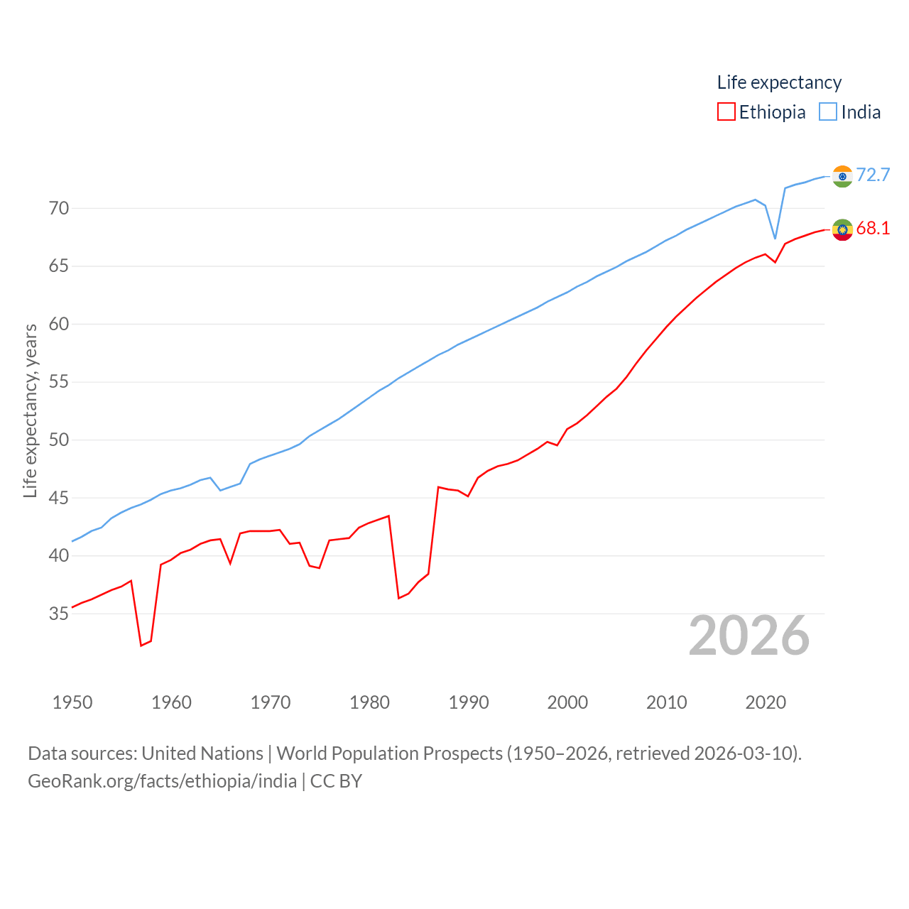- United Nations | World Population Prospects (1950–2026, retrieved 2026-03-10)