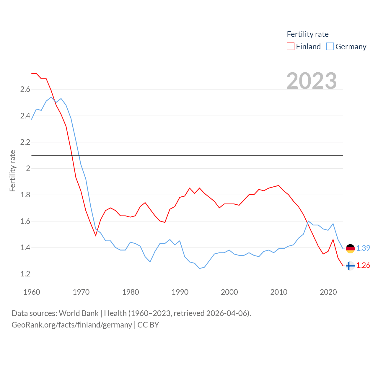 - World Bank | Health (1960–2025, retrieved 2026-04-06)