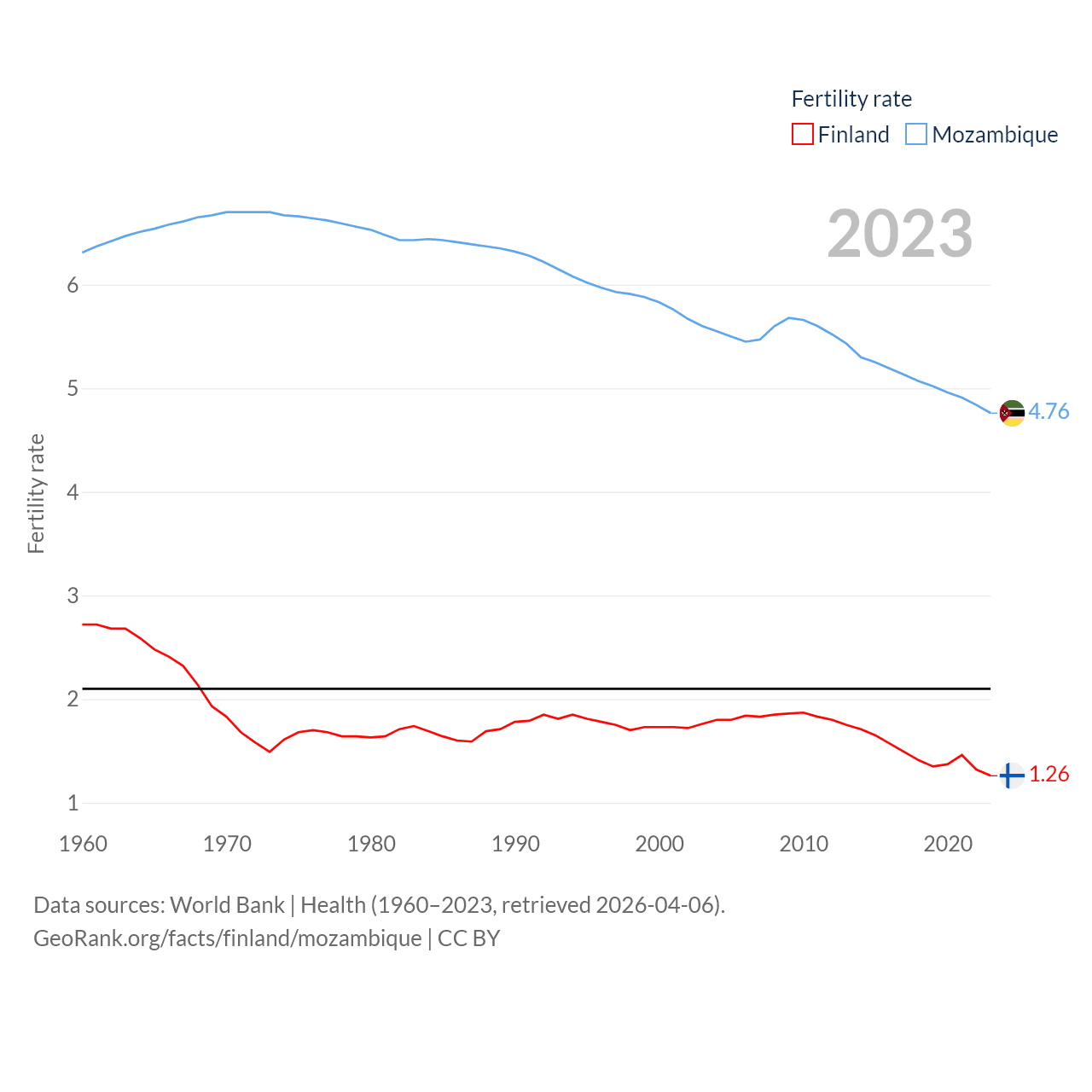 - World Bank | Health (1960–2025, retrieved 2026-04-06)