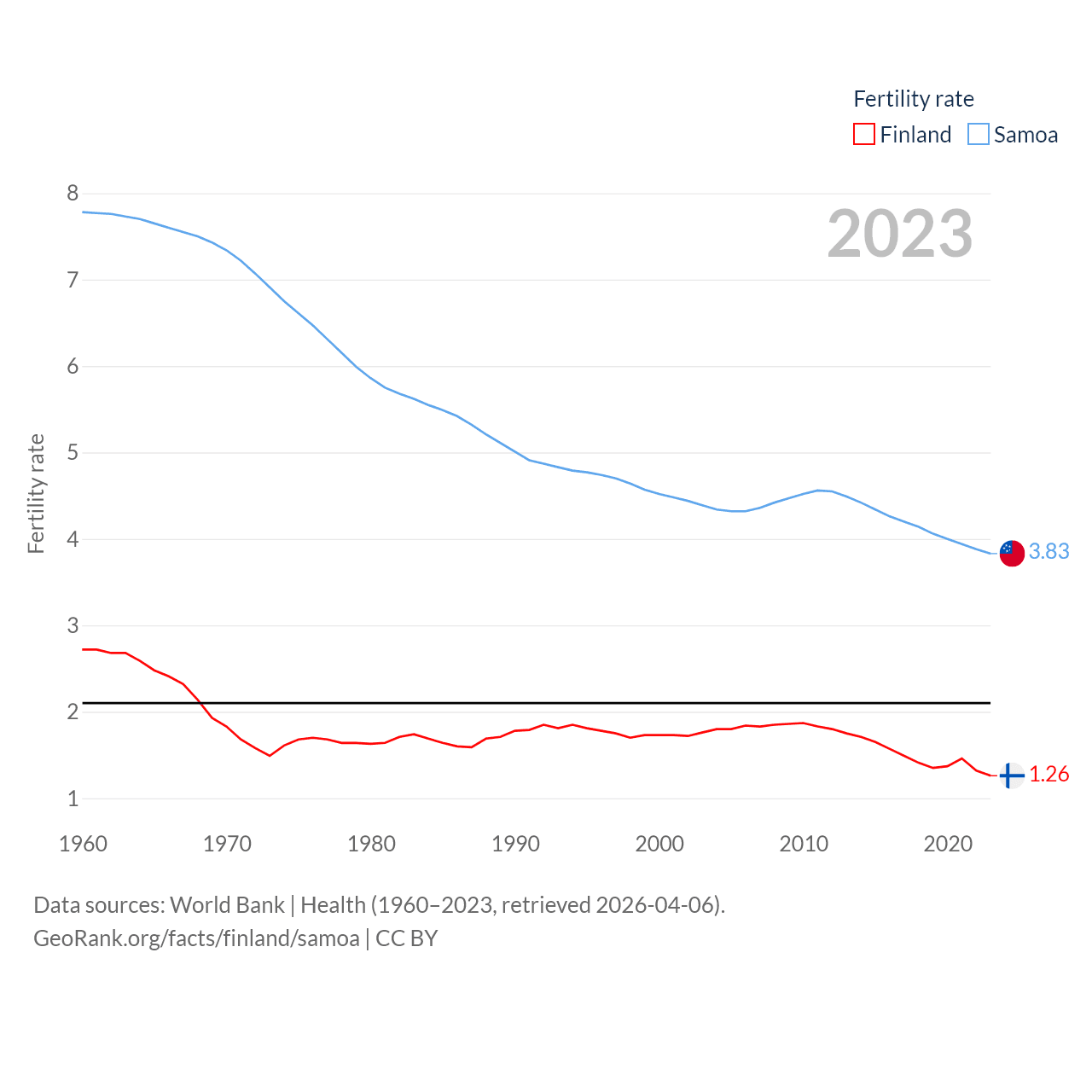 - World Bank | Health (1960–2025, retrieved 2026-04-06)