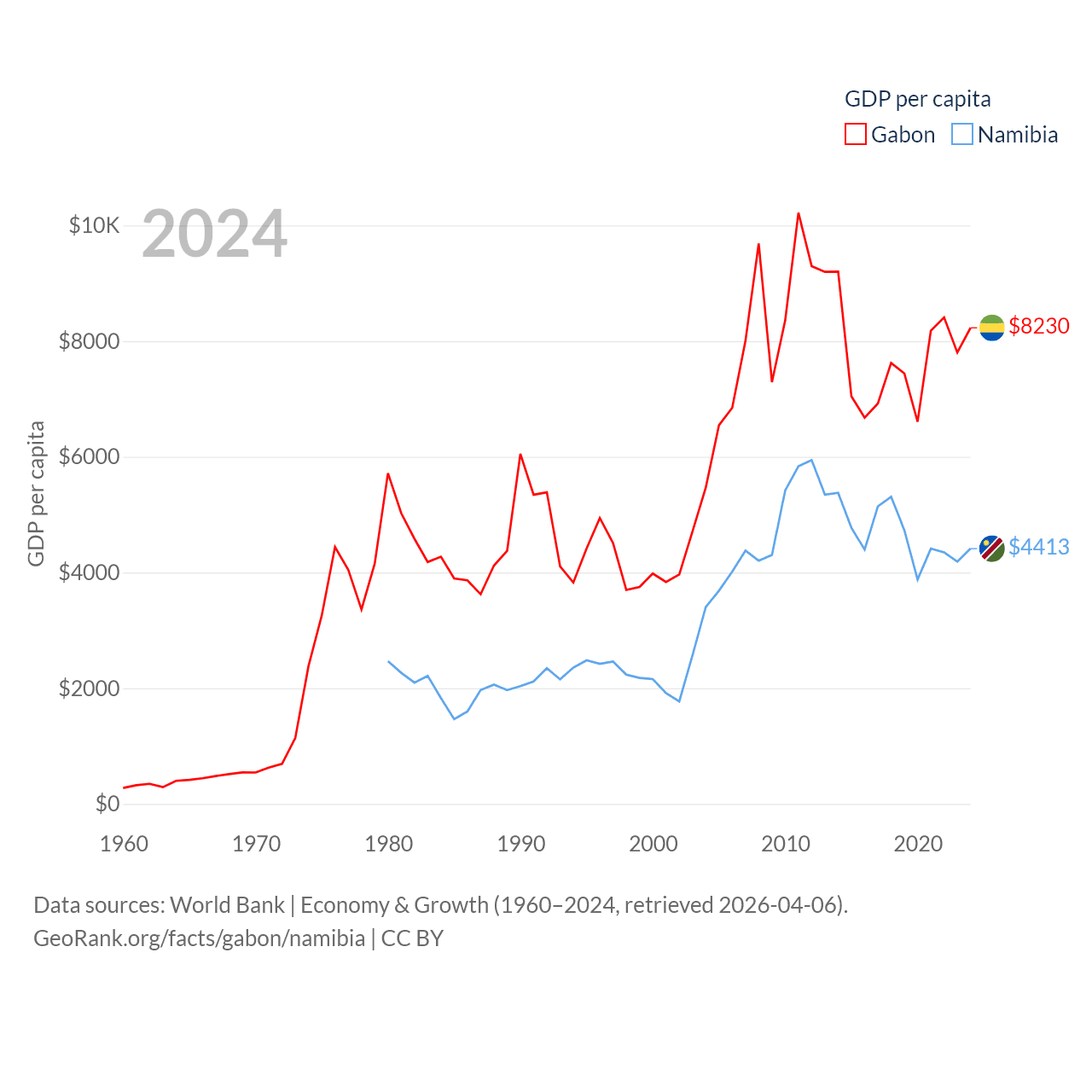 Gabon and Namibia economies compared