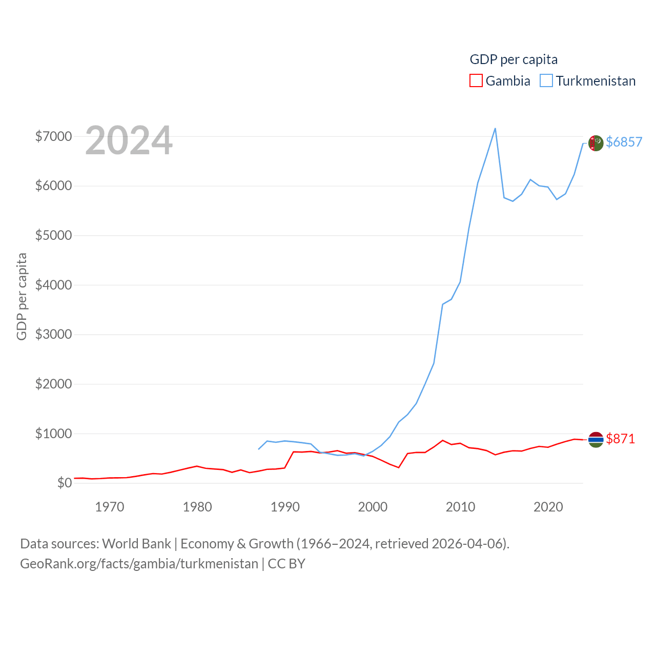 Gambia and Turkmenistan economies compared