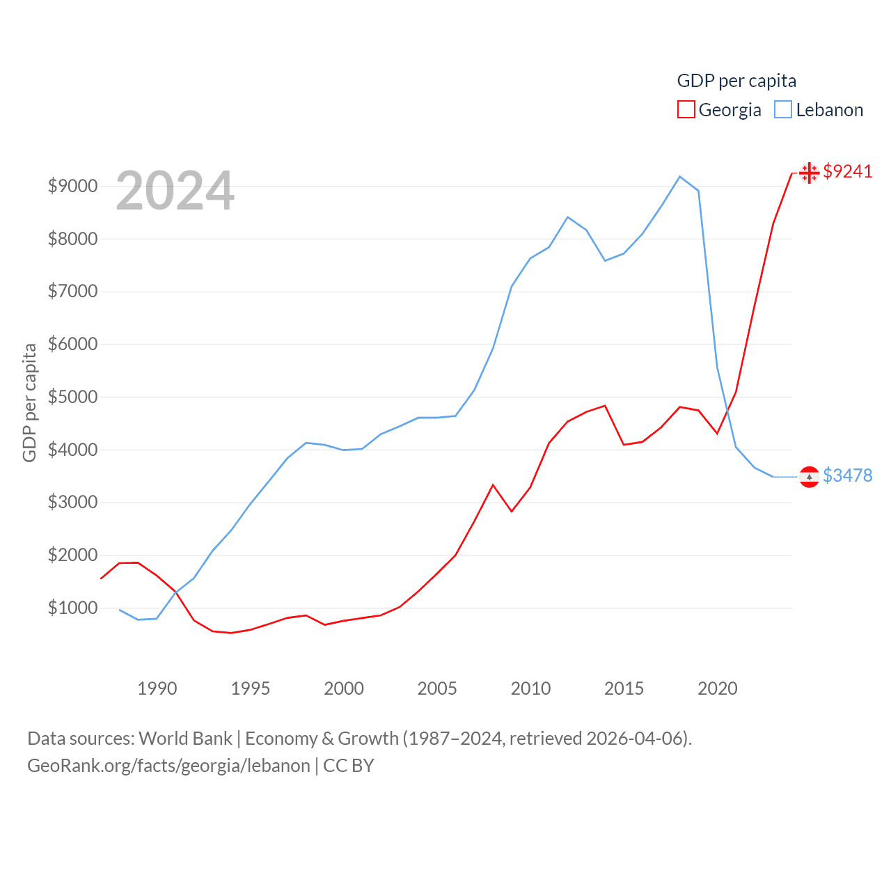 Data sources: World Bank | Economy & Growth (1987–2024, retrieved 2026-04-06).