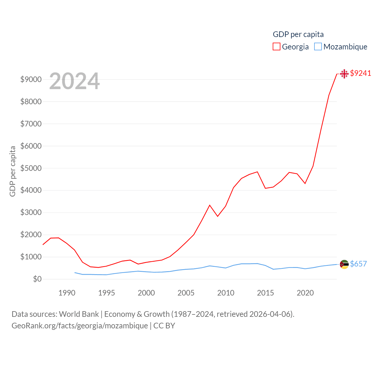 Data sources: World Bank | Economy & Growth (1987–2024, retrieved 2026-04-06).