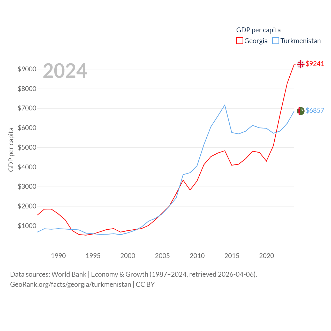 Data sources: World Bank | Economy & Growth (1987–2024, retrieved 2026-04-06).