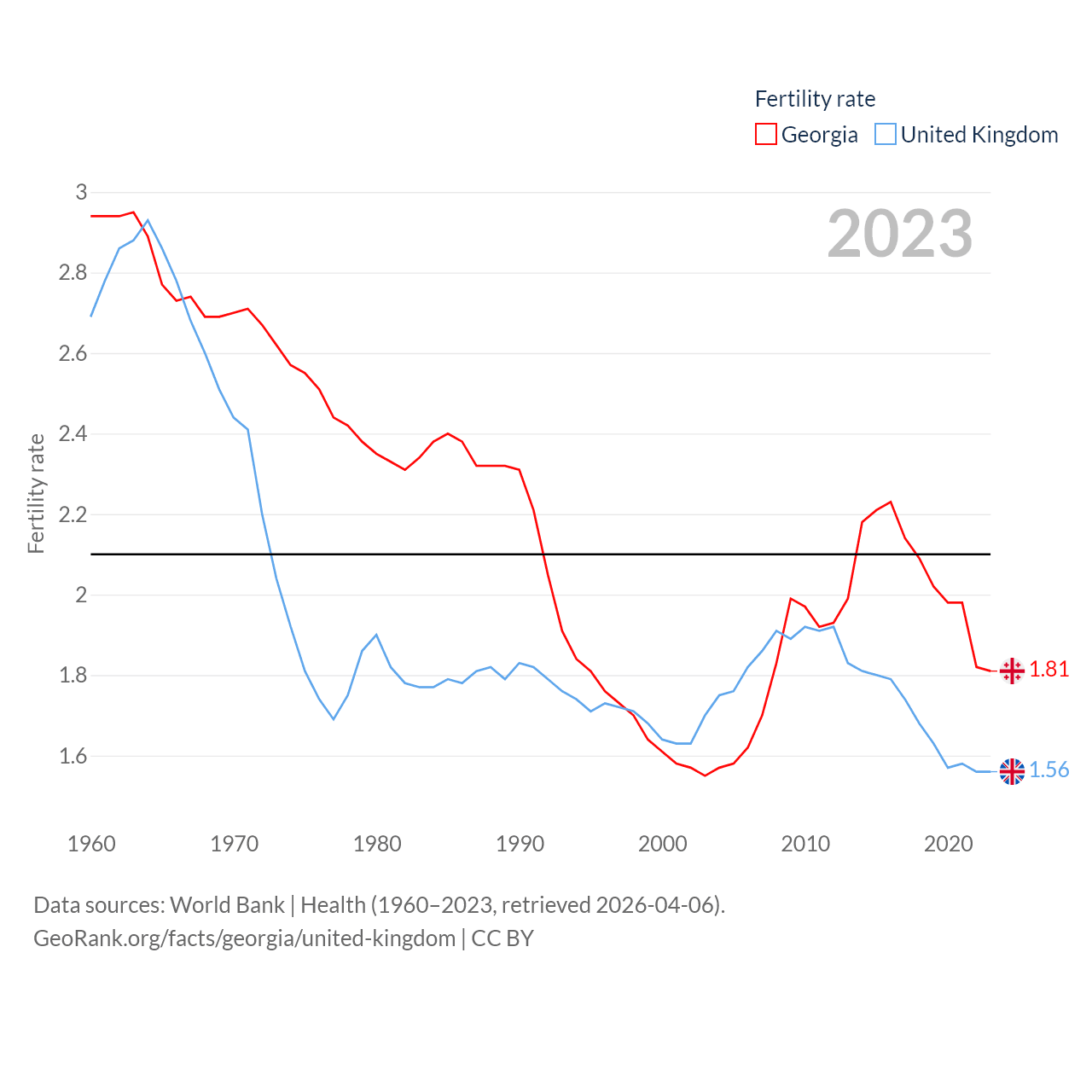 - World Bank | Health (1960–2025, retrieved 2026-04-06)