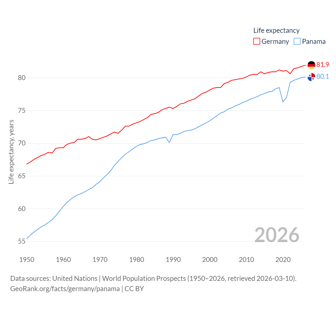 - United Nations | World Population Prospects (1950–2026, retrieved 2026-03-10)