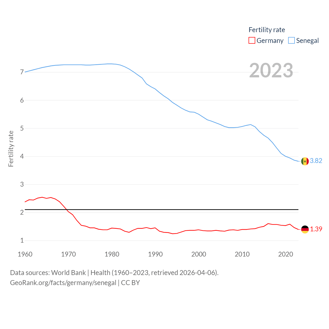 - World Bank | Health (1960–2025, retrieved 2026-04-06)