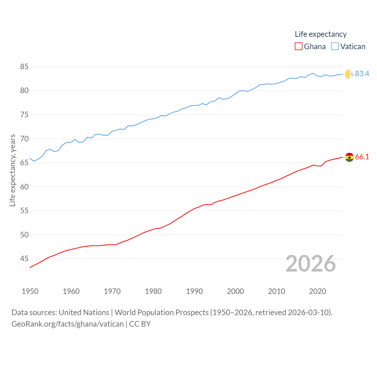 Ghana vs. Vatican life expectancy calculator
