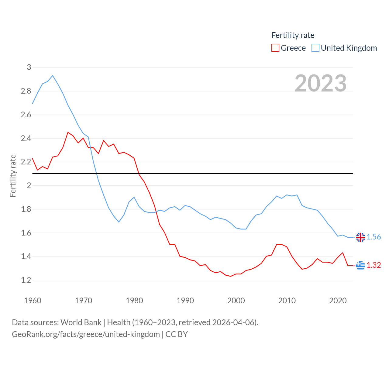 - World Bank | Health (1960–2025, retrieved 2026-04-06)