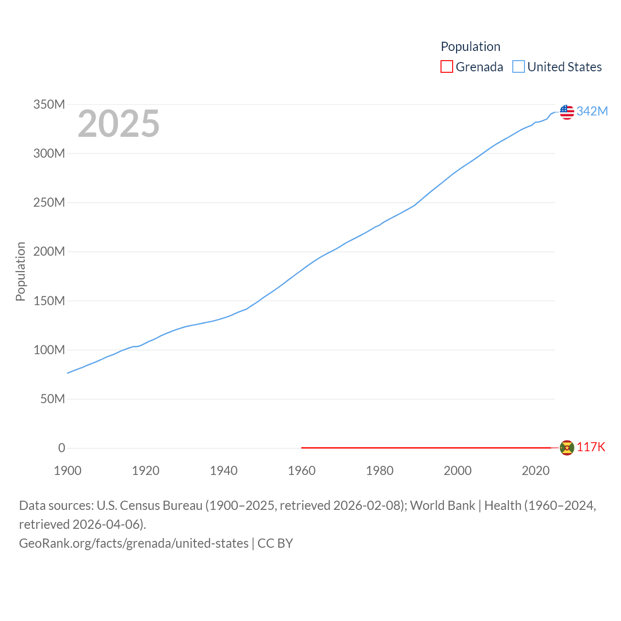 - U.S. Census Bureau (1900–2025, retrieved 2026-02-08)