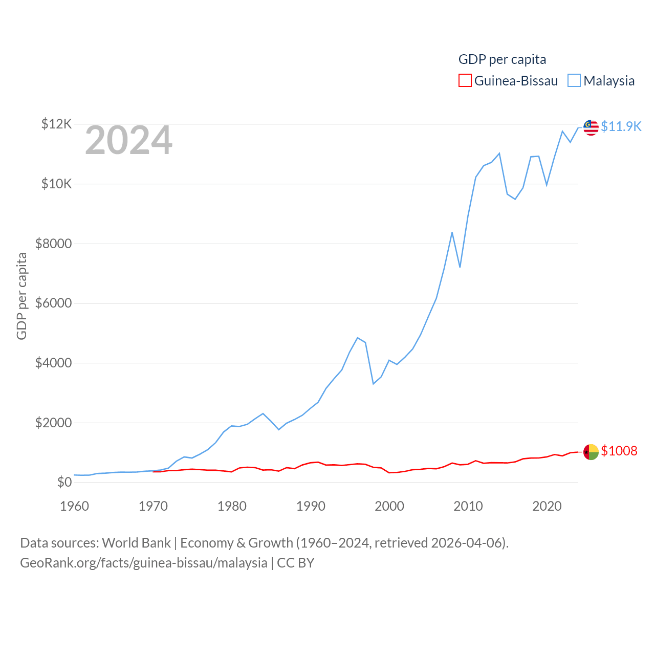 Guinea-Bissau and Malaysia economies compared