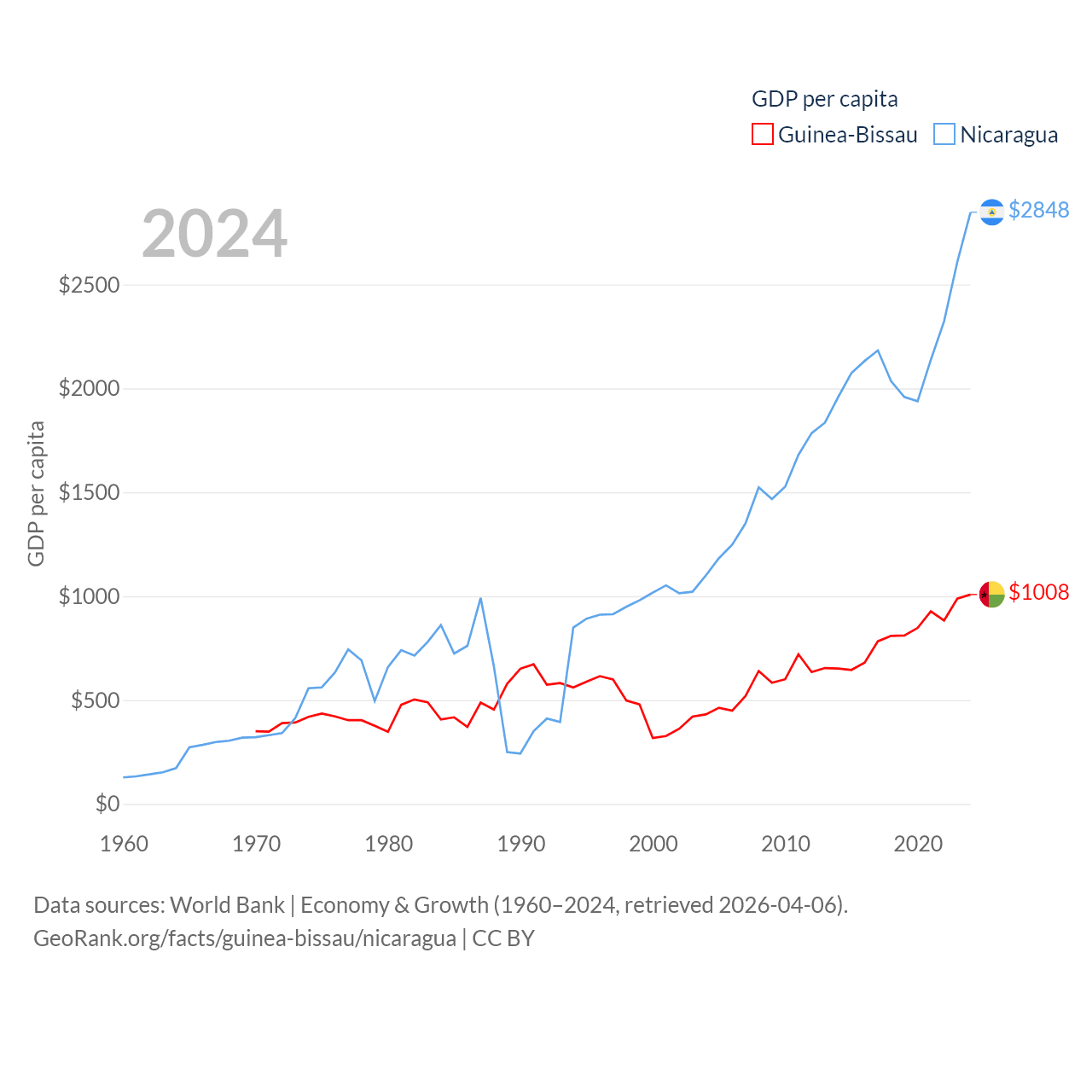 Guinea-Bissau and Nicaragua economies compared