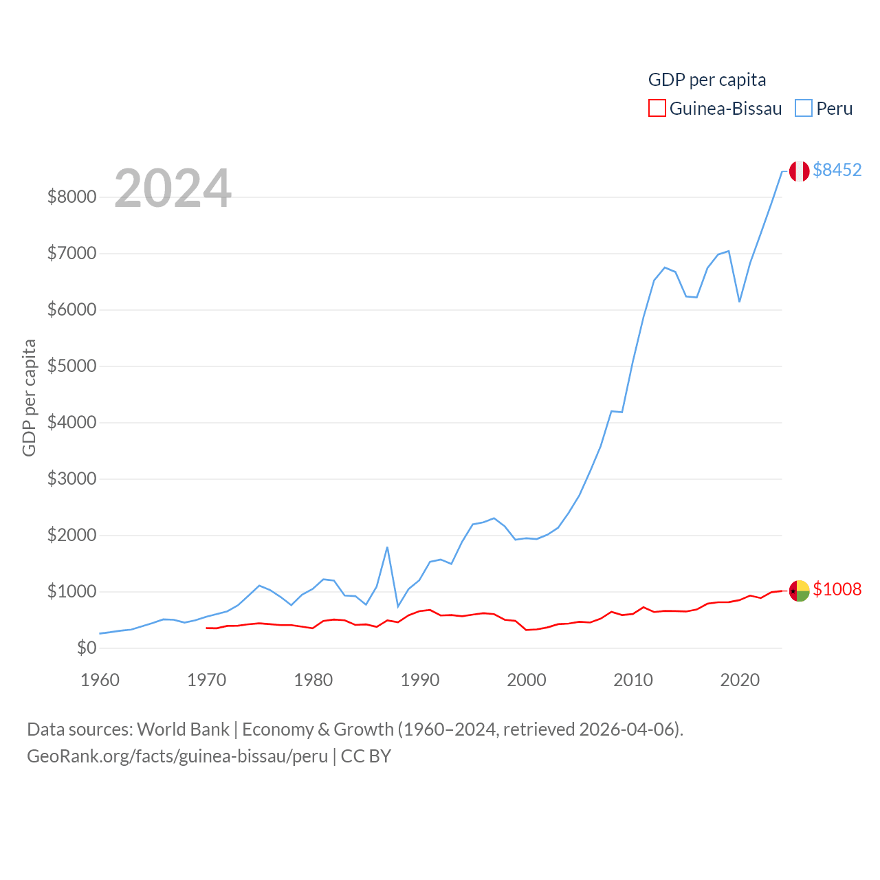 Guinea-Bissau and Peru economies compared