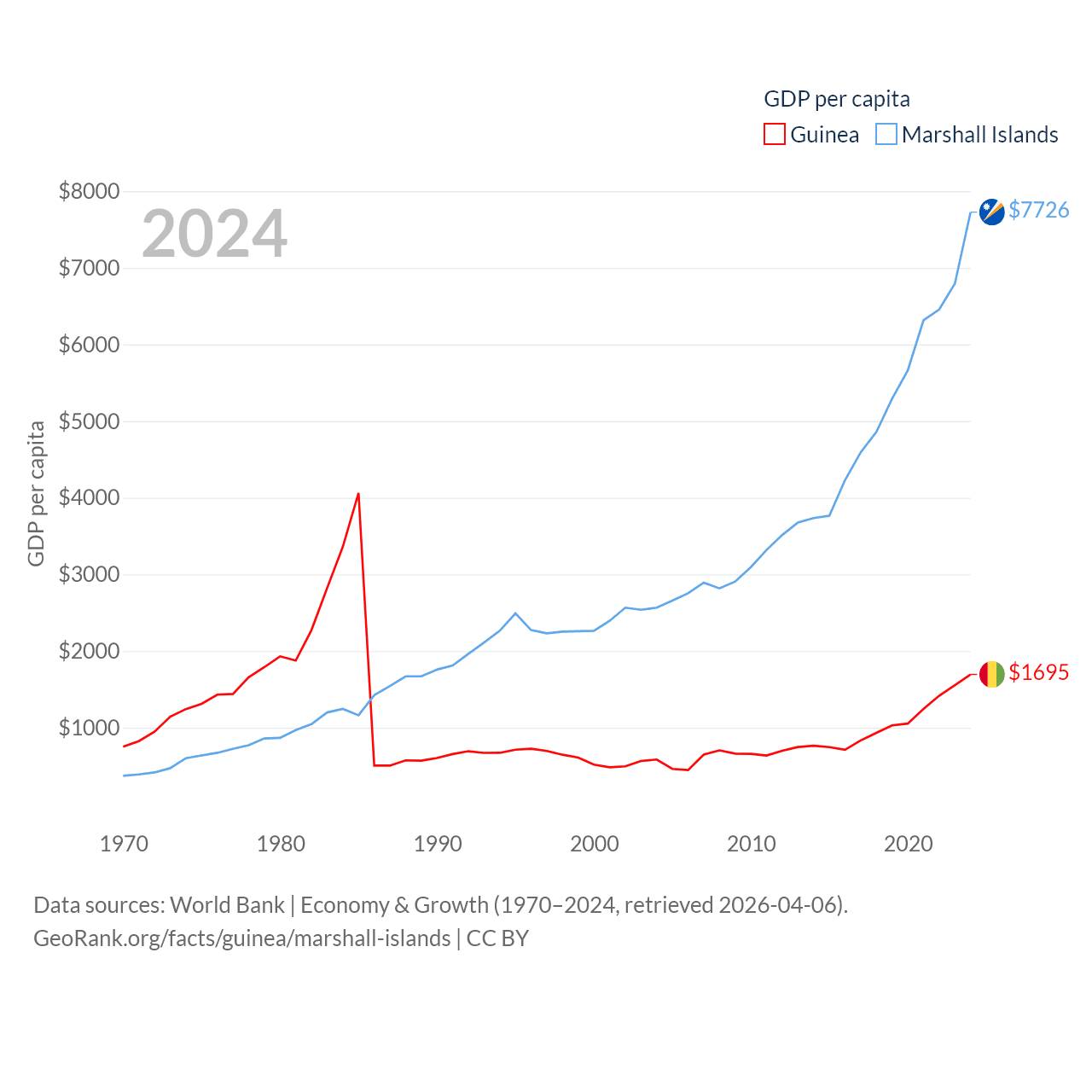 Guinea and Marshall Islands economies compared